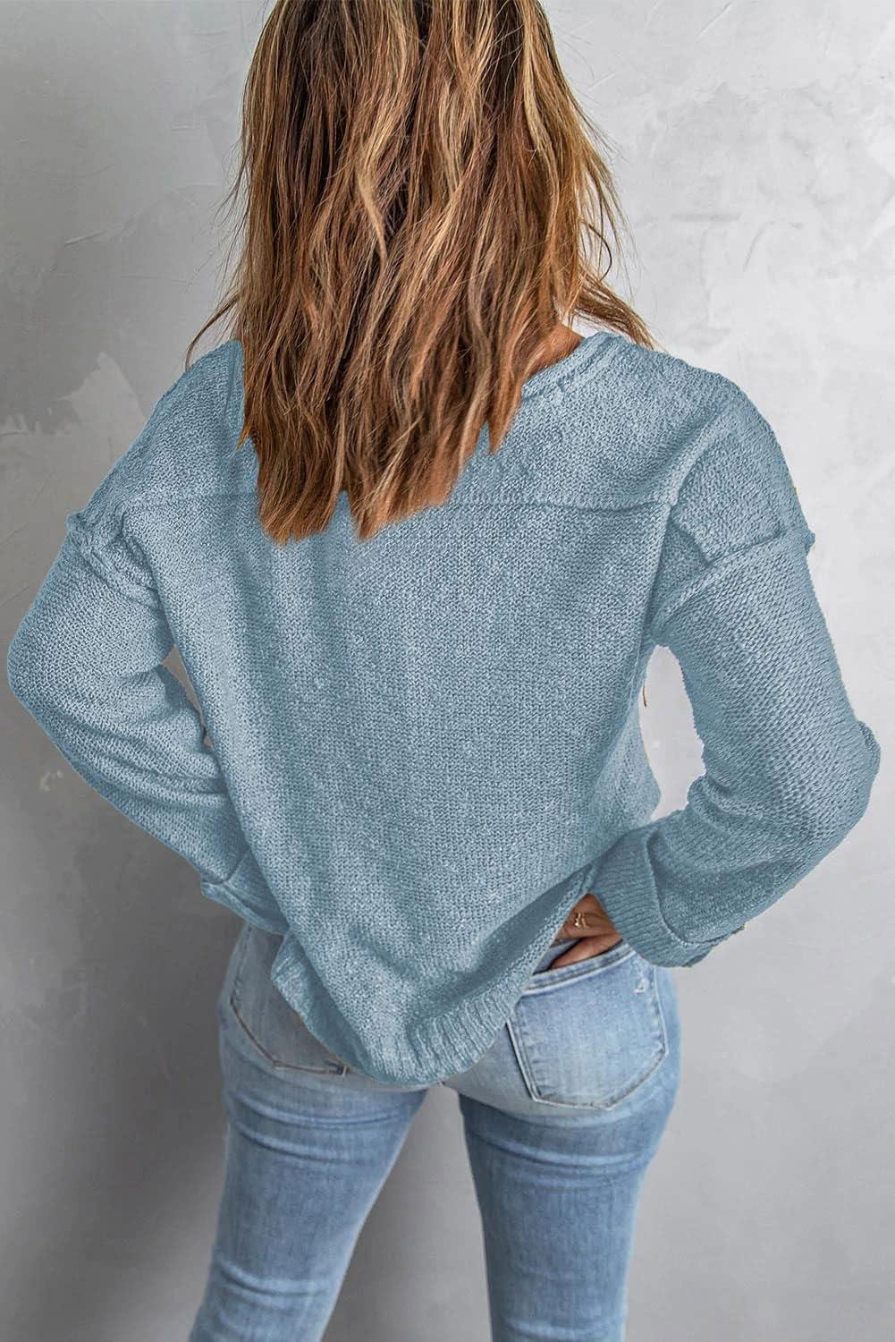 CHARTOU Women Chunky Knit Sweater Pullover Roll Up Long Sleeve Knitted Sweater Jersey Jumper(Light Blue)