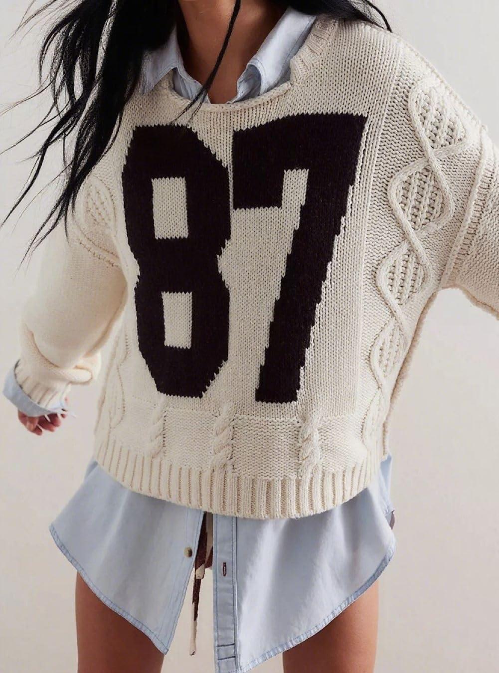 CHARTOU Women Knit Pullover Sweater/ Contrast Color Fall 2025 Outfits/ Casual Loose Fit Cable Sweater/ Oversized Slouchy Jumper Tops/ Scroop neck Jumper Sweater Clothing