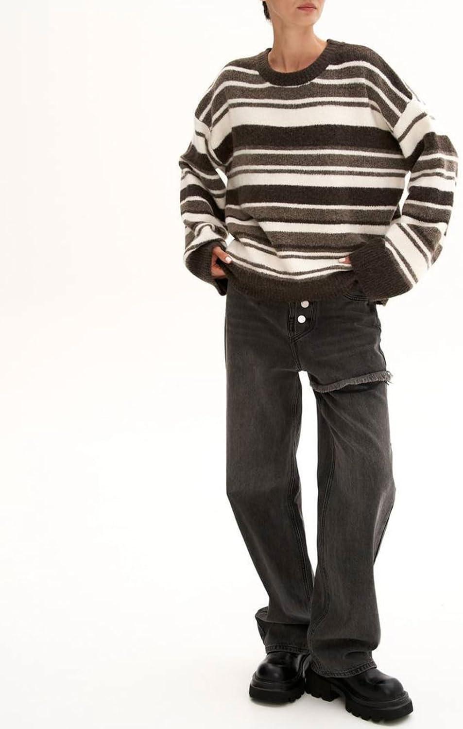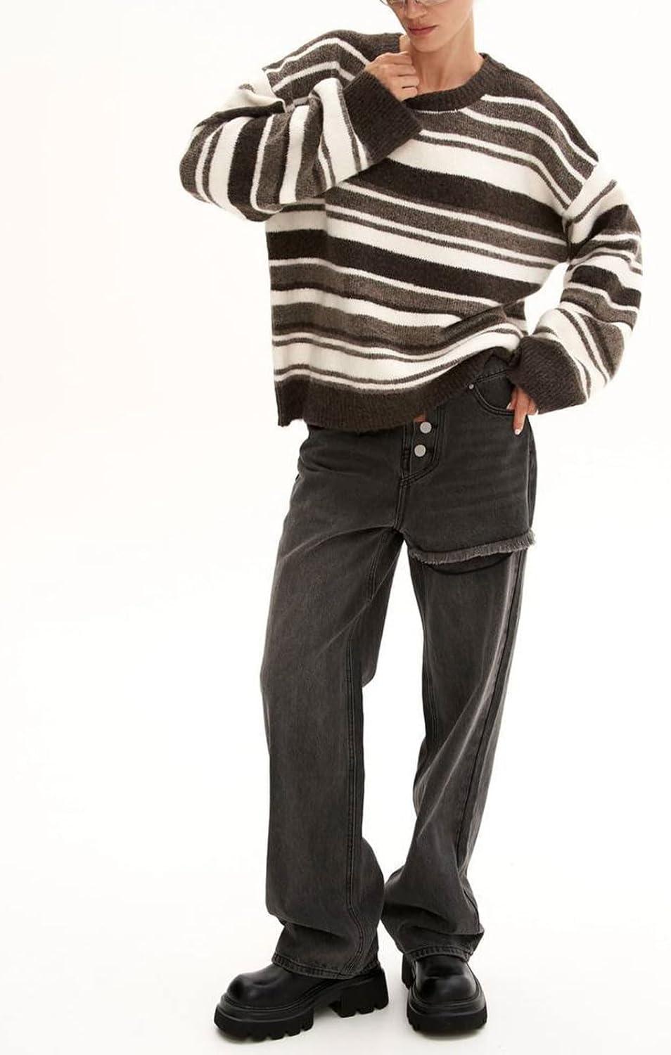 Women Contrast Striped Oversized Sweater Fall Fashion Knitted Pullover Sweater Crewneck Cute Tops Casual oversized sweatshirt for women 2025/ Loose fit color block jumpers for women trendy womens fall sweater Striped sweater women short knit sweater crew neck sweater long sleeves tops Cozy sweaters for women knitwear casual outwear pullover jumper womens oversized striped sweater soft knit crew neck pullover sweatshirt for women loose fit casual jumper fall fashion must have contrast color winter casual sweater brown long sleeve tops cute knitwear cozy sweaters for women stretch knit pullover