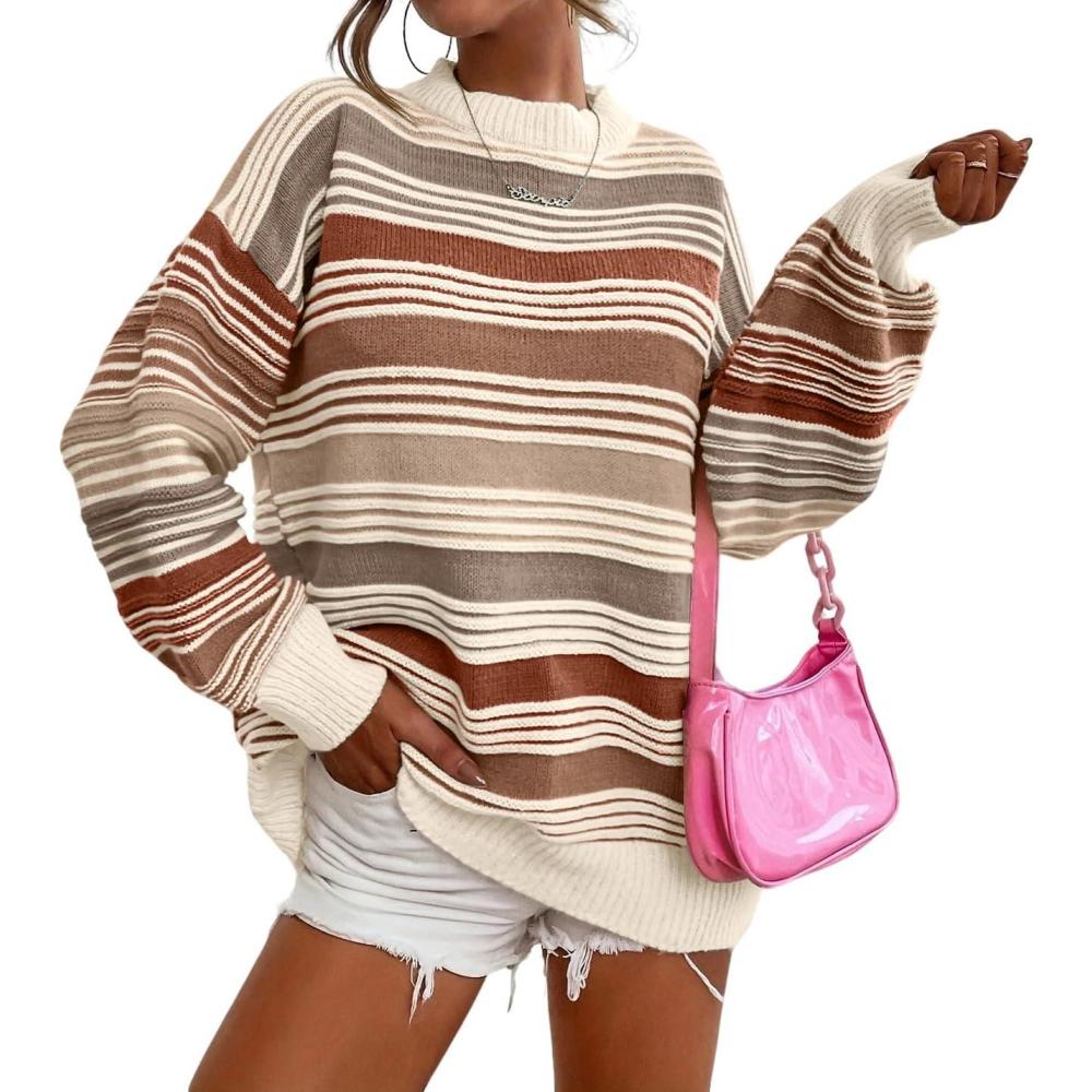 Get your hands on our exclusive CHARTOU Women Contrast Striped Pullover Sweater 2025 Fall Outfits Oversized Knit Jumper Tops(Brown) collection, now at a discounted price.