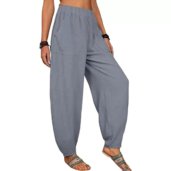 CHARTOU Women Cotton Linen Beach Pants Baggy Harem Pants Trouser Tapered Leg Joggers Slacks Lightweight(Grey)