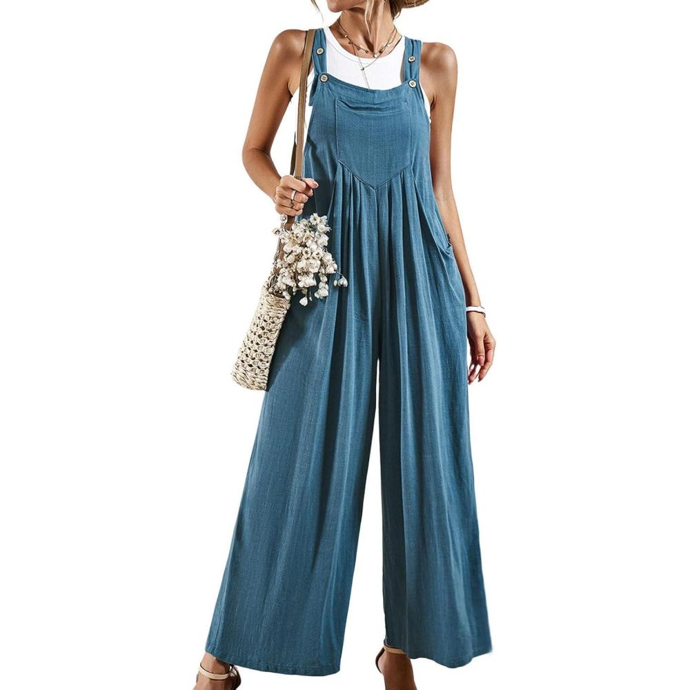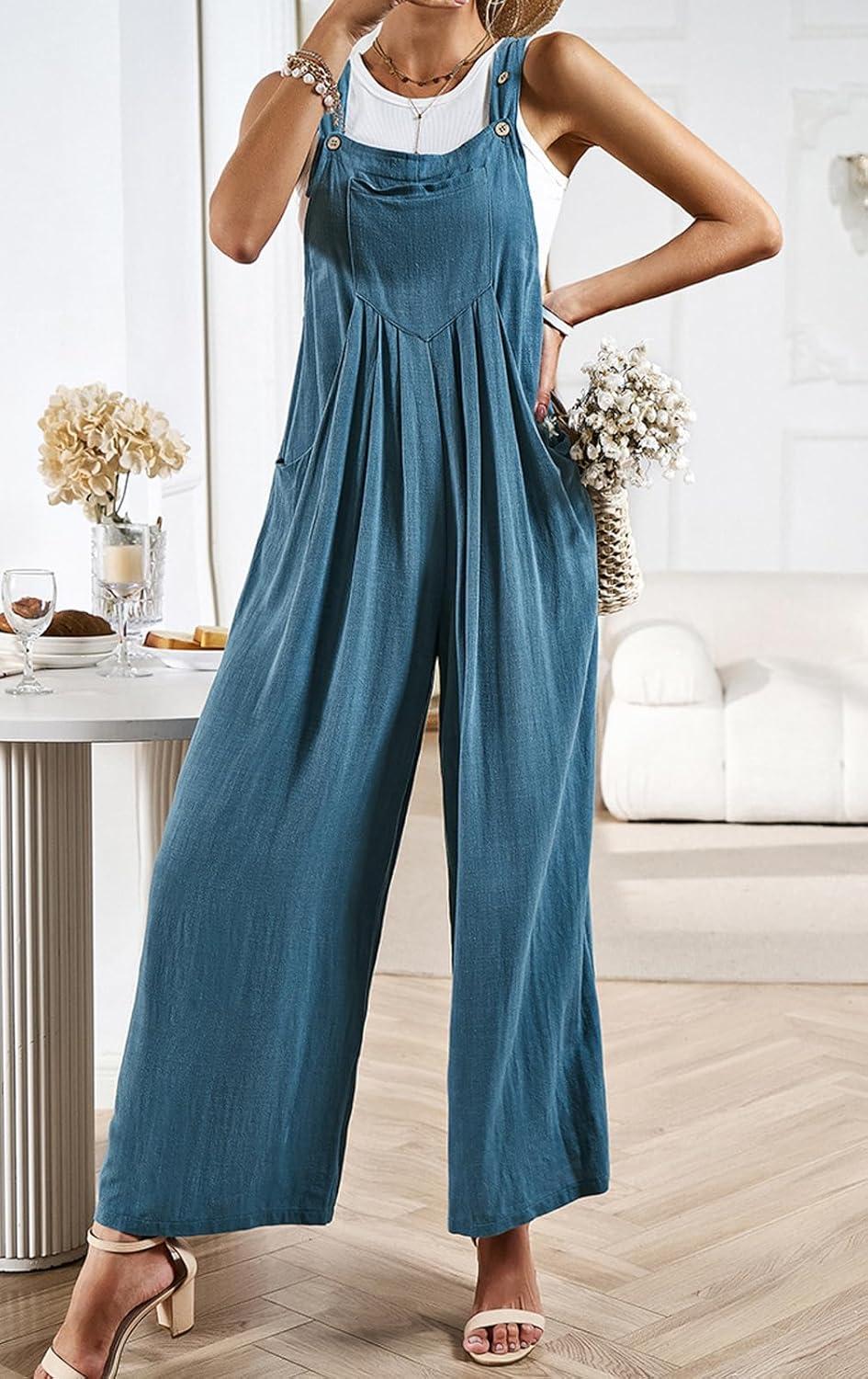 Get the CHARTOU Women Cotton Wide Leg Overalls Jumpsuits Linen Loose Bib Romper One Piece Straps Flowy Palazzo Jumpsuit Pocket(Lake Blue) you want at a discounted price during our markdown sale event.