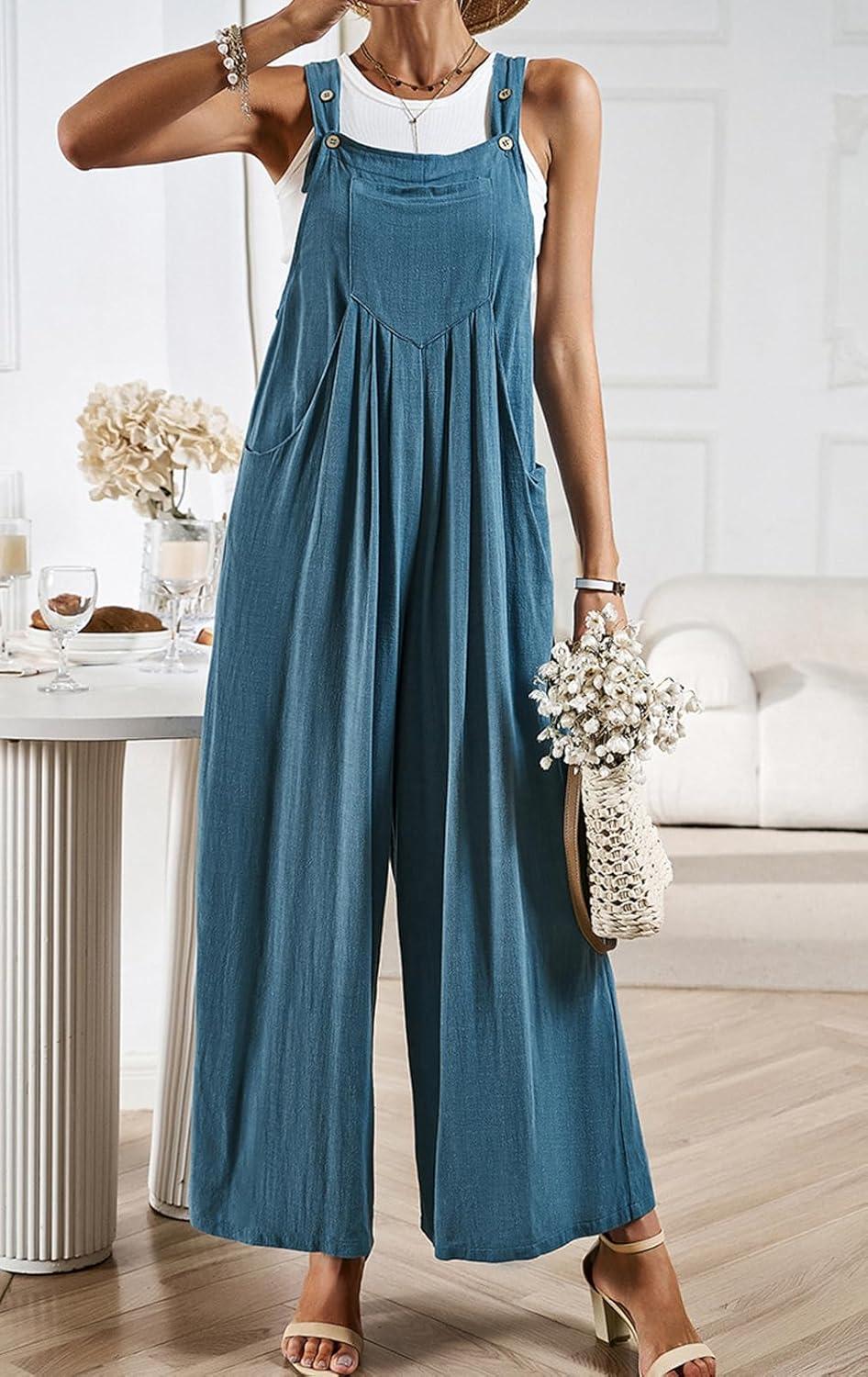 CHARTOU Women Cotton Wide Leg Overalls Jumpsuits Linen Loose Bib Romper One Piece Straps Flowy Palazzo Jumpsuit Pocket One piece outfits- Adjustable straps women linen overalls jumpsuit Baggy bib overalls one piece jumpsuits for women/ Lightweight and thin long rompers for summer 【Size Guide for WIDE LEG JUMPSUIT】—-XS=US 0-2, S=US 4-6, M=US 8-10, L=US 12-14, XL=US 16-18, XXL=US 20-22. Please refer to the body size chart in last picture before purchase. 【SELLING POINTS for LOOSE OVERALLS】—– Loose and oversized overalals/ Sleeveless jumpsuit/ Casual adjustable strap suspender jumpsuit/ 1 Front pocket and 2 side pockets/ Pleated ruffle jumpsuit/ Wide leg pants women palazzo pants/ Plain modest overalls- black overalls for women, off white overalls, dark grey jumpsuit for women, apricot, lake blue, orange 【VERSATILE LINING JUMPSUIT】—- Weekend women loose overalls summer jumpsuit comfy romper wide leg overalls jumpsuits cotton linen jumper coveralls, daily wear loose bib rompers for women flowy pants casual adjustable strap loose bib rompers suspender jumpsuit ruffle pleated palazzo pants jumpsuit, streetwear oversized onesie sweat overalls cotton jumper coveralls, holiday vacation, night club loose bib rompers, nursing jumpsuit maternity overalls, cruise outfits for women 2024 Womens Summer Bib Overalls Cotton Linen Cropped Tulip Hem Casual Jumpsuit Romper Women Long Casual Loose Bib Pants Overalls Baggy Rompers Jumpsuits with Pockets Women's Summer Casual Loose Tank Jumpsuit Sleeveless Crewneck Long Pants Jumpsuit Romper with Pockets Baggy Loose Linen Overalls for Women Dual Pockets Adjustable Straps Casual Bib Jumpsuit Suspender