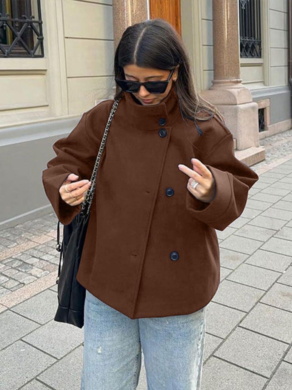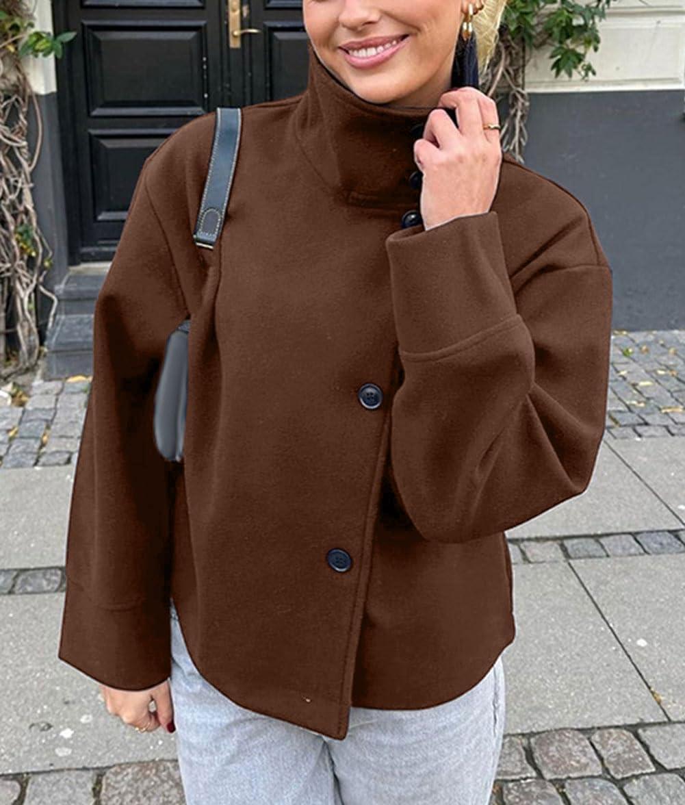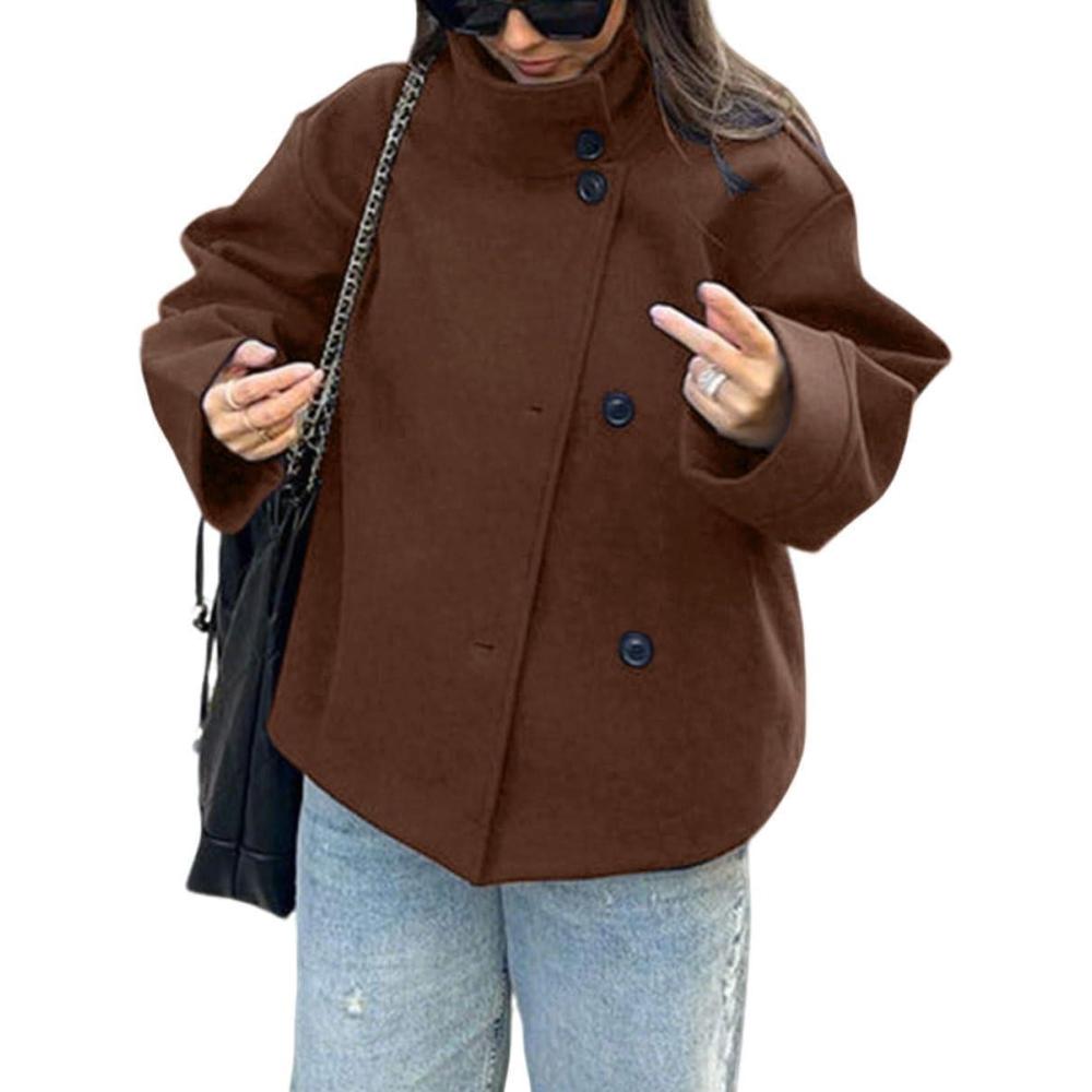 CHARTOU Women Crop Pea Coat Wool Blend Winter Loose Casual Short Jacket Outwear(Coffee)