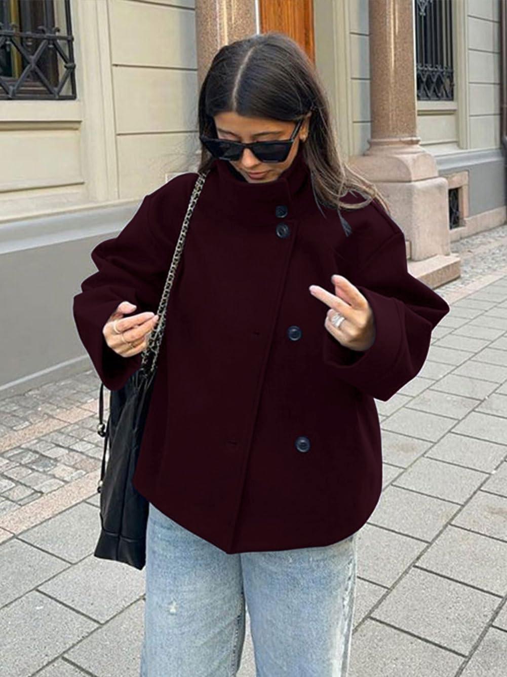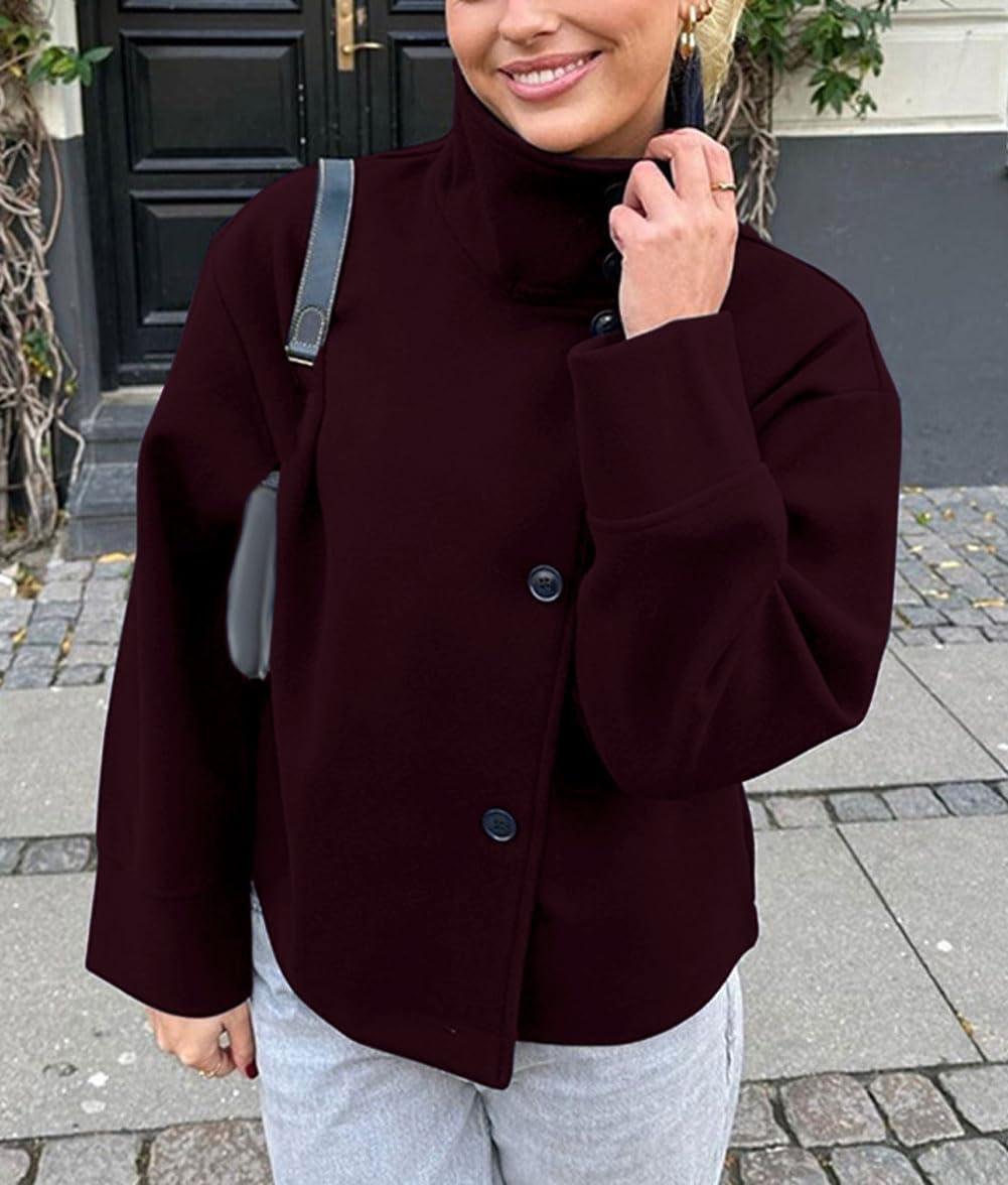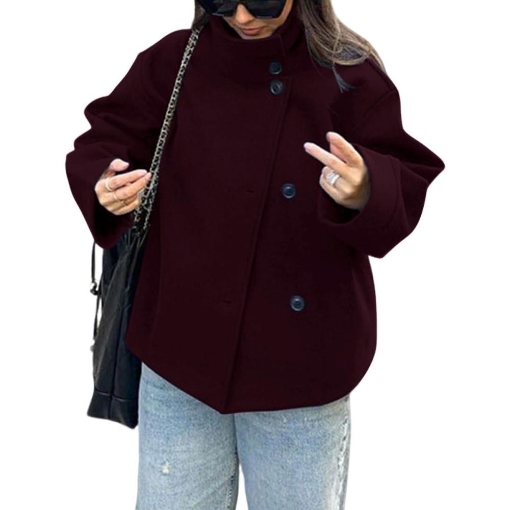 CHARTOU Women Crop Pea Coat Wool Blend Winter Loose Casual Short Jacket Outwear(Wine)