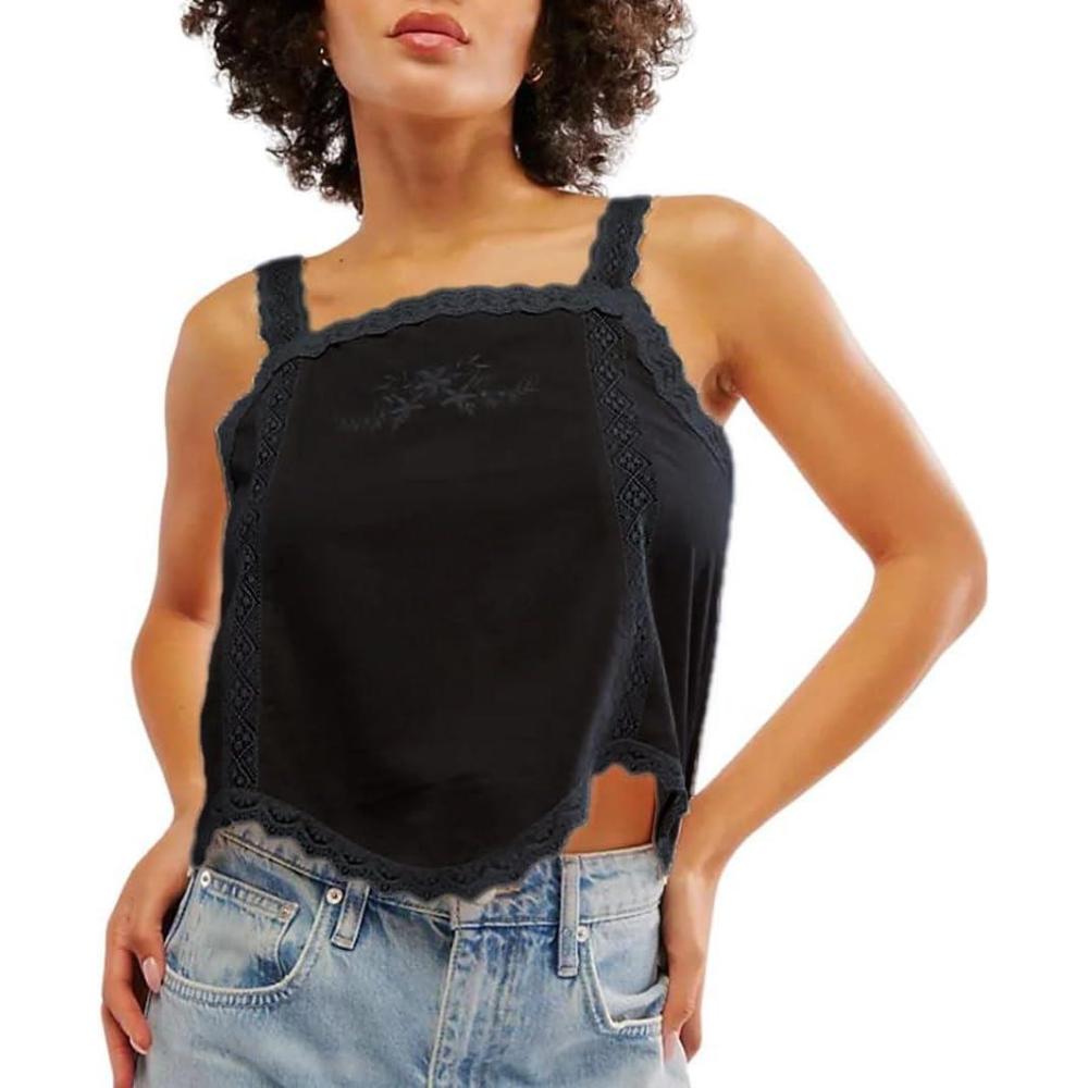 CHARTOU Women Cute Cami Tops Lace Embroidered Sleeveless Camisole Tank Shirt(Black)