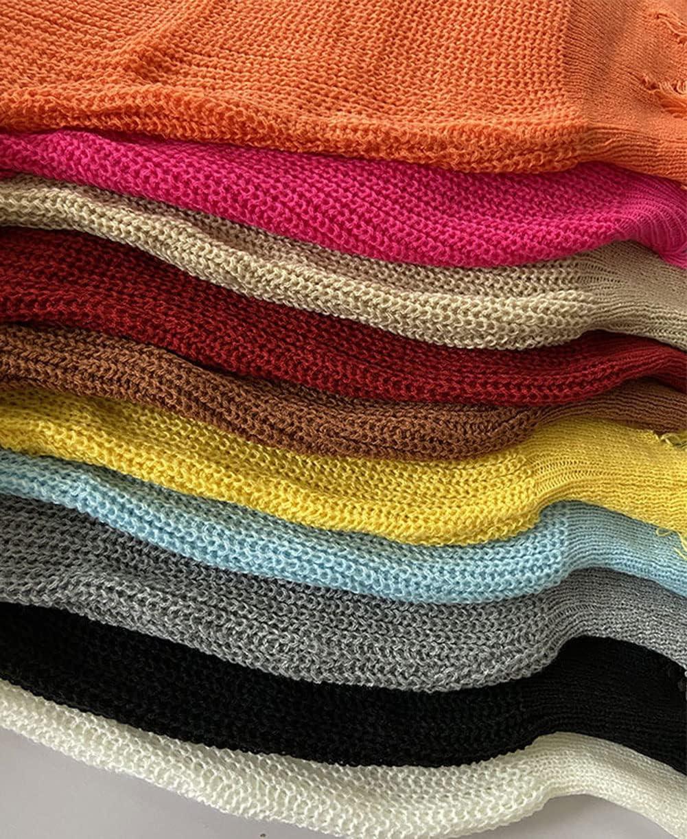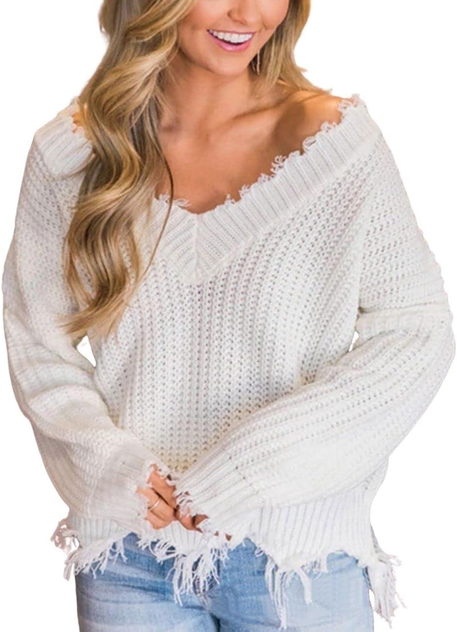 CHARTOU Women Cute Ripped Knitted Sweater Distressed Oversized Crop Knit Pullover Sweater Knitwear(White)