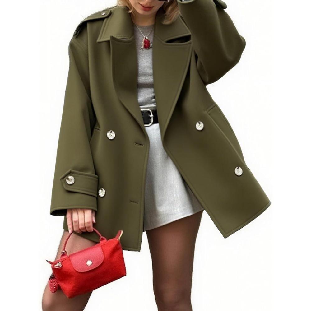 CHARTOU Women Double Breasted Short Pea Coat Fall Winter Notch Lapel Midi Jacket Warm Overcoat(Arm Green)