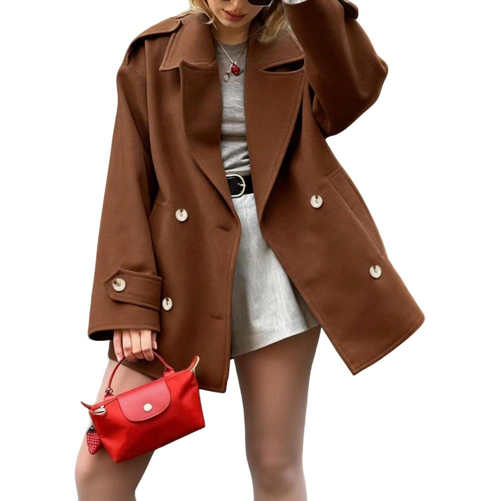 CHARTOU Women Double Breasted Short Pea Coat/ Women Trendy 2025 Fall Winter Vacation Outfits/ Notch Lapel Midi Jacket/ Warm Thicken Overcoat