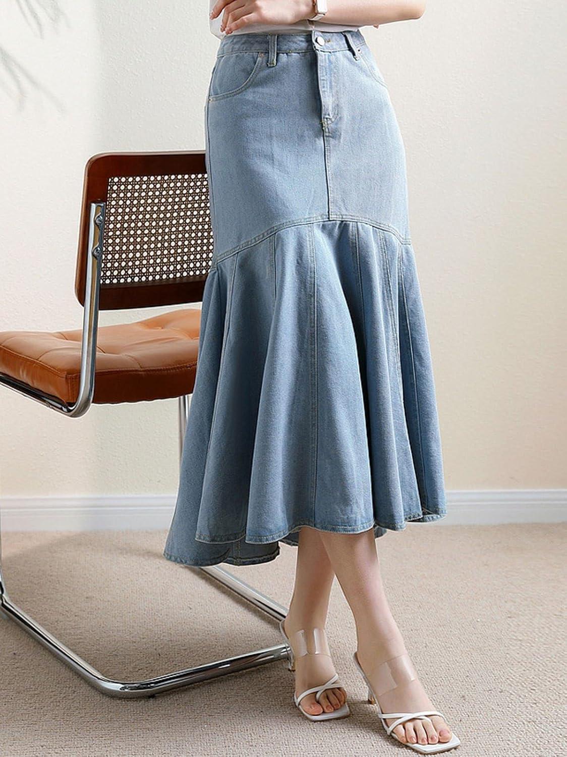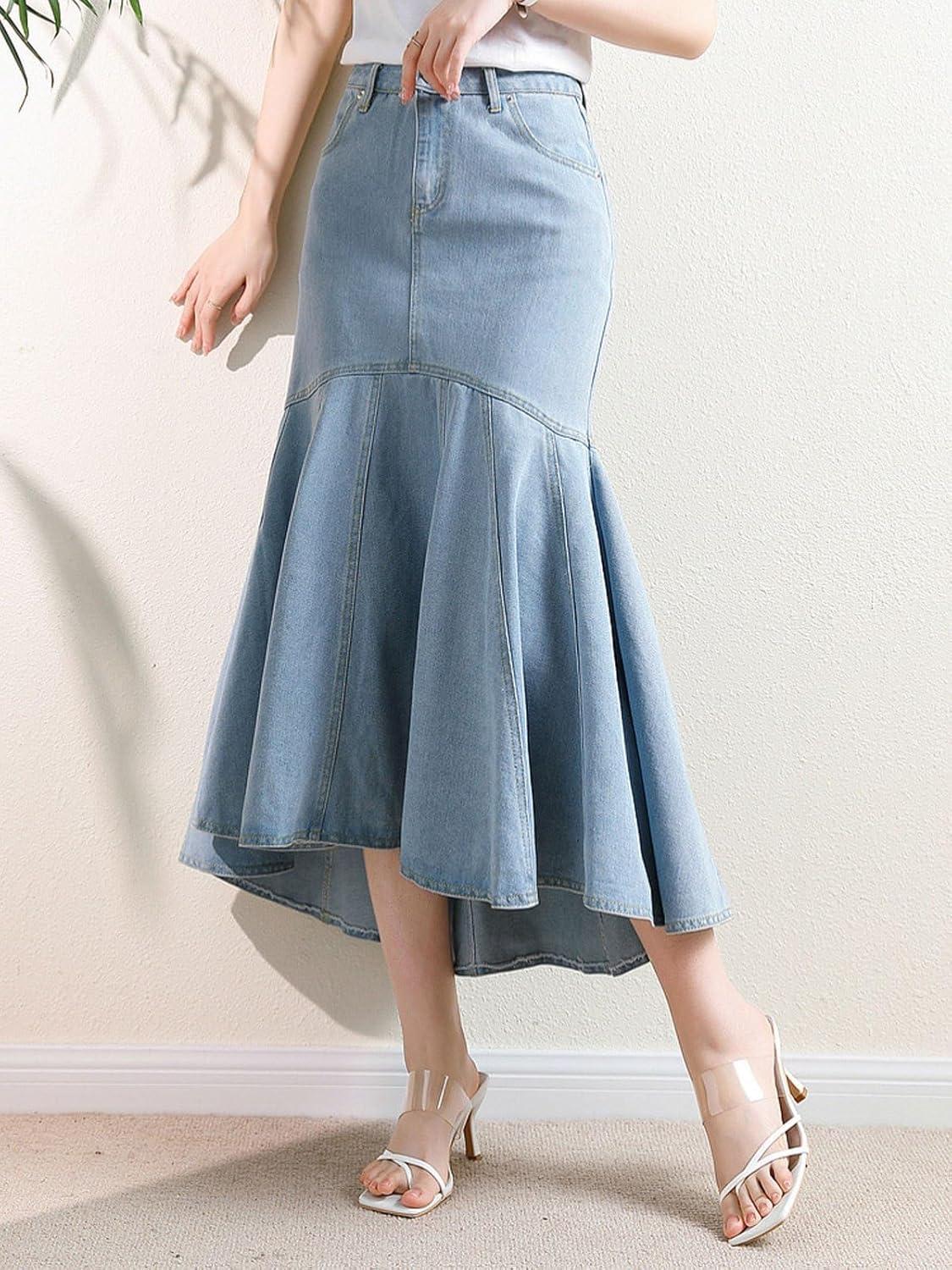 Women Elegant Fish Tail Long Jean Dress High Waist Ruffle High-Low Hem Party Stretchy Denim Skirt Flowy blue jean long skirt for women office work/ Trendy button-fly pleated midi skirt with pockets Chic Mermaid Denim Skirt Women Long flowy skirts for women trendy fish tail skirt Fall Jean Skirt chic ruffle flare skirt patchwork stylish fishtail skirt blue jean skirt khaki denim skirts for women 2026 Western Cowgirl Jean Skirt Denim Midi Skirt Dressy Ladies Women long jean skirt high waisted denim skirt women trendy flared mid long skirt elegant pleated high low hem skirt with pockets mermaid style cowgirl jean skirt for women casual dressy fishtail skirt western stretch denim skirt stylish party skirt
