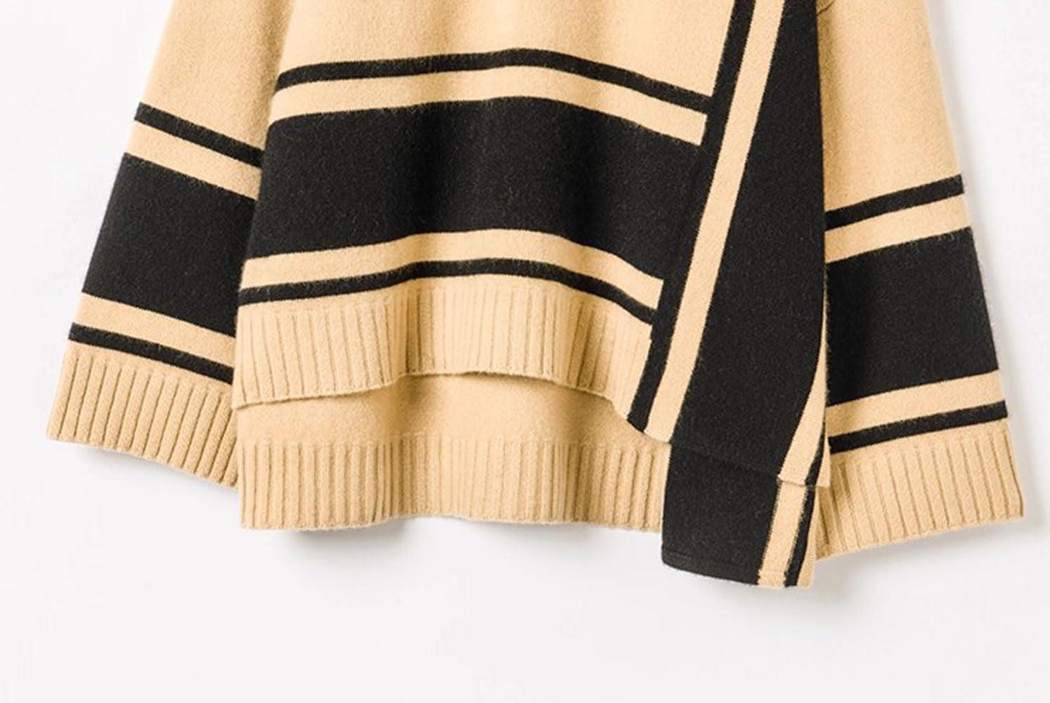 CHARTOU Women Contrast Stripe Sweater Casual Crewneck Batwing Long Sleeve Pullover Sweater Jumper Tops(Khaki)