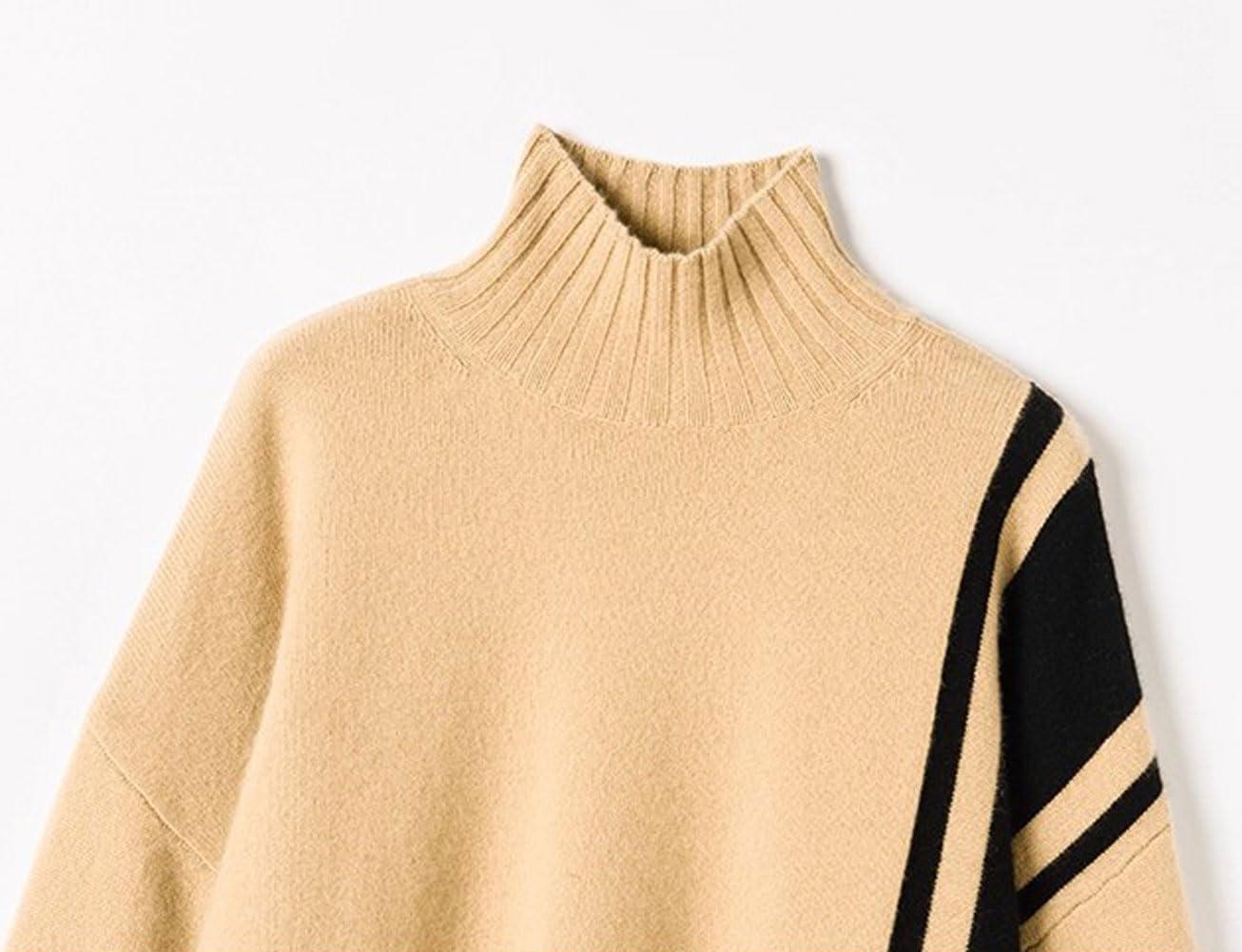 CHARTOU Women Fall 2025 Turtleneck Sweater Color Block Oversized Hi-Low Sweaters Knit Jumper Tops(Camel)