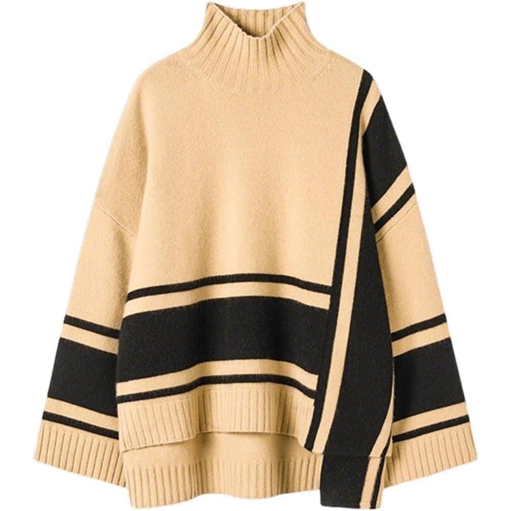 Women Fall 2025 Turtleneck Sweater Color Block Oversized Hi-Low Sweaters Knit Jumper Tops/ Size Tips: US Size. S=US 4-6, M=US 8-10, L=US 12-14, XL=US 16-18, XXL=US 20; This Color Block Women Turtleneck Sweater Is Made Of Skin-Touch Fabric, Keep You Warm And Comfortable, Offering A Brilliant Wearing Experience/ Loose Fit Women Fall Sweater Tops/ Trendy Color Block Pullover Sweaters/ Chic Hi-Low Contrast Fall Sweater Tops/ Color Block Women Sweaters: This Unique Contrast Color Sweater Tops Featuring Loosing-Fit, Effortlessly Offering Slouchy Fit for Your Winter Holiday Sweater Tops; Chic Hi-Low Relaxed Fit Sweater, Tuck It In Your Pants for A Sophisticated Casual Look/ Design: Pull On Closure/ High Turtle Neck Sweater Tops/ Drop Shoulder Long Sleeve Sweaters for Women/ A-Line Silhouette Women Fall Sweaters/ Irregular Hi-Low Women Sweater/ Color Patchwork Winter Basic Sweater/ Women Cozy Winter Pullover Sweater Tops/ Occasion: Slouchy Fit Women Holiday Sweater Outfits/ Green Turtleneck Pullover Sweaters for Christmas Sweater Outfits/ Hi-Low Oversized Pullover Sweater for Relaxed Fit Pregnant Women Warm Pullover Sweaters/ Black and White Color Block Casual Sweater for Women 2025 Fall Outfits