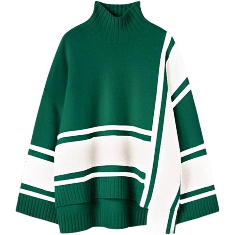 CHARTOU Women Fall 2025 Turtleneck Sweater Color Block Oversized Hi-Low Sweaters Knit Jumper Tops(Green)