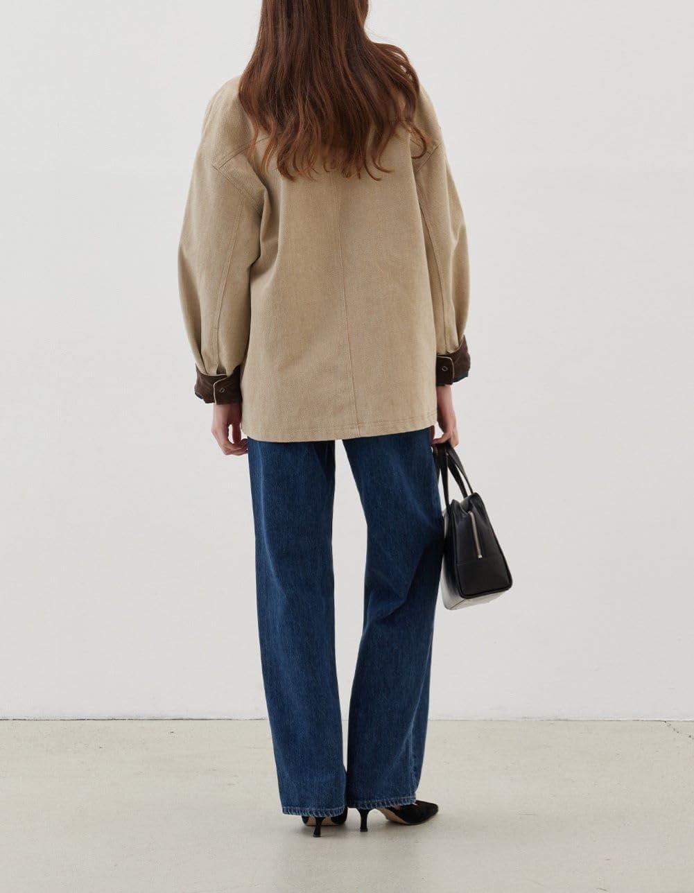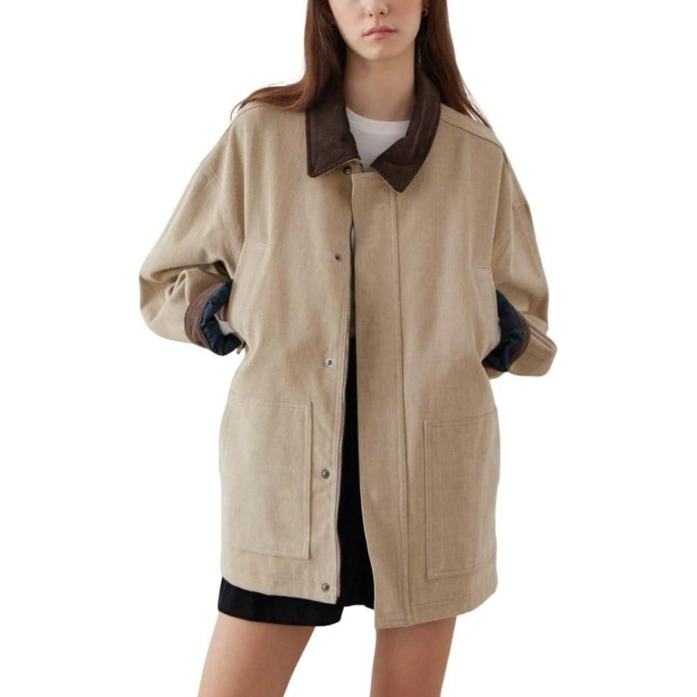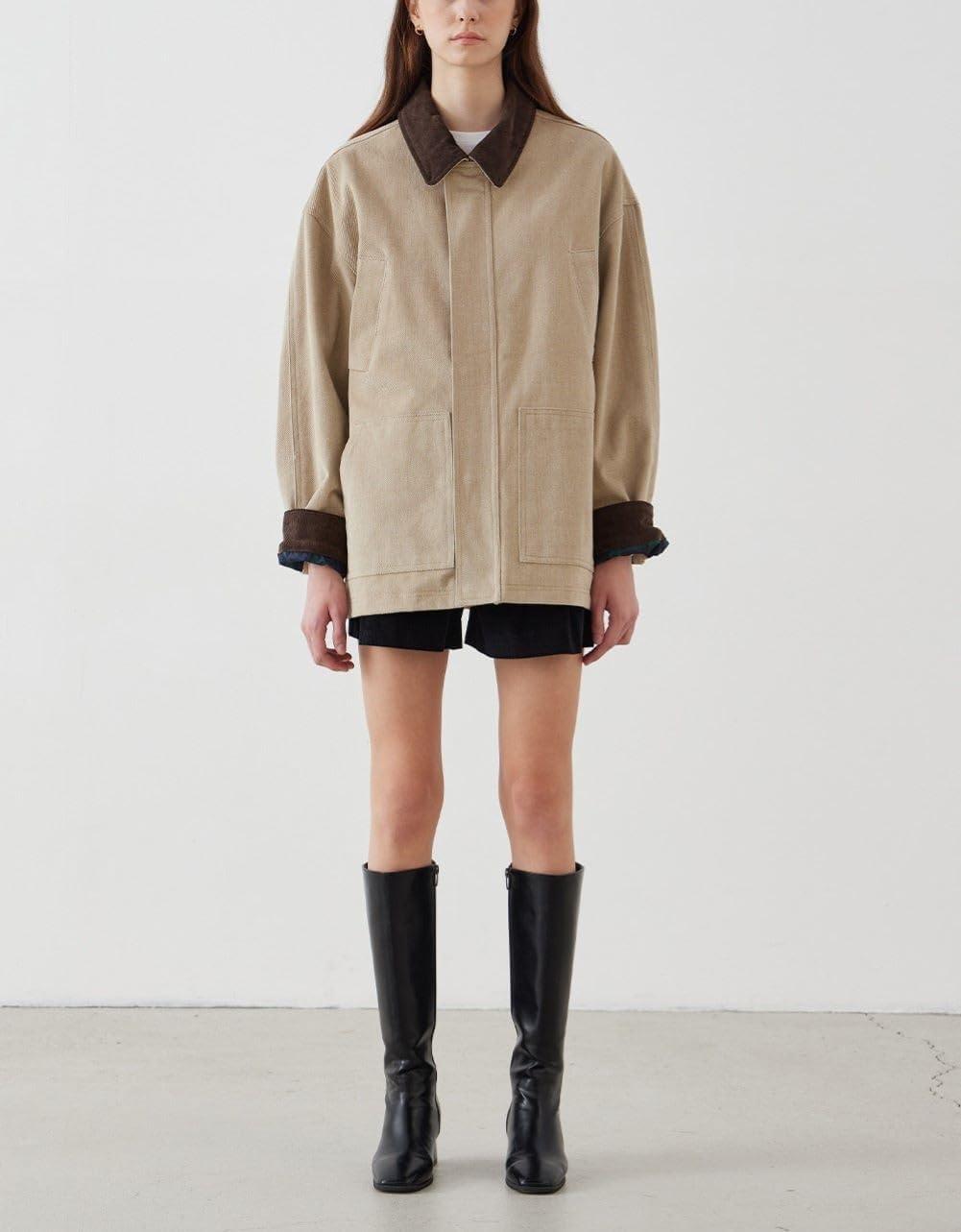 CHARTOU Women Spring Fall Cargo Jacket/ Color Contrast Patchwork Shacket/ Collared Lapel Long Sleeve Shirt Coat/ Zipper Snap Button Cargo Shacket/ Casual Loose Fit Oversized Jacket