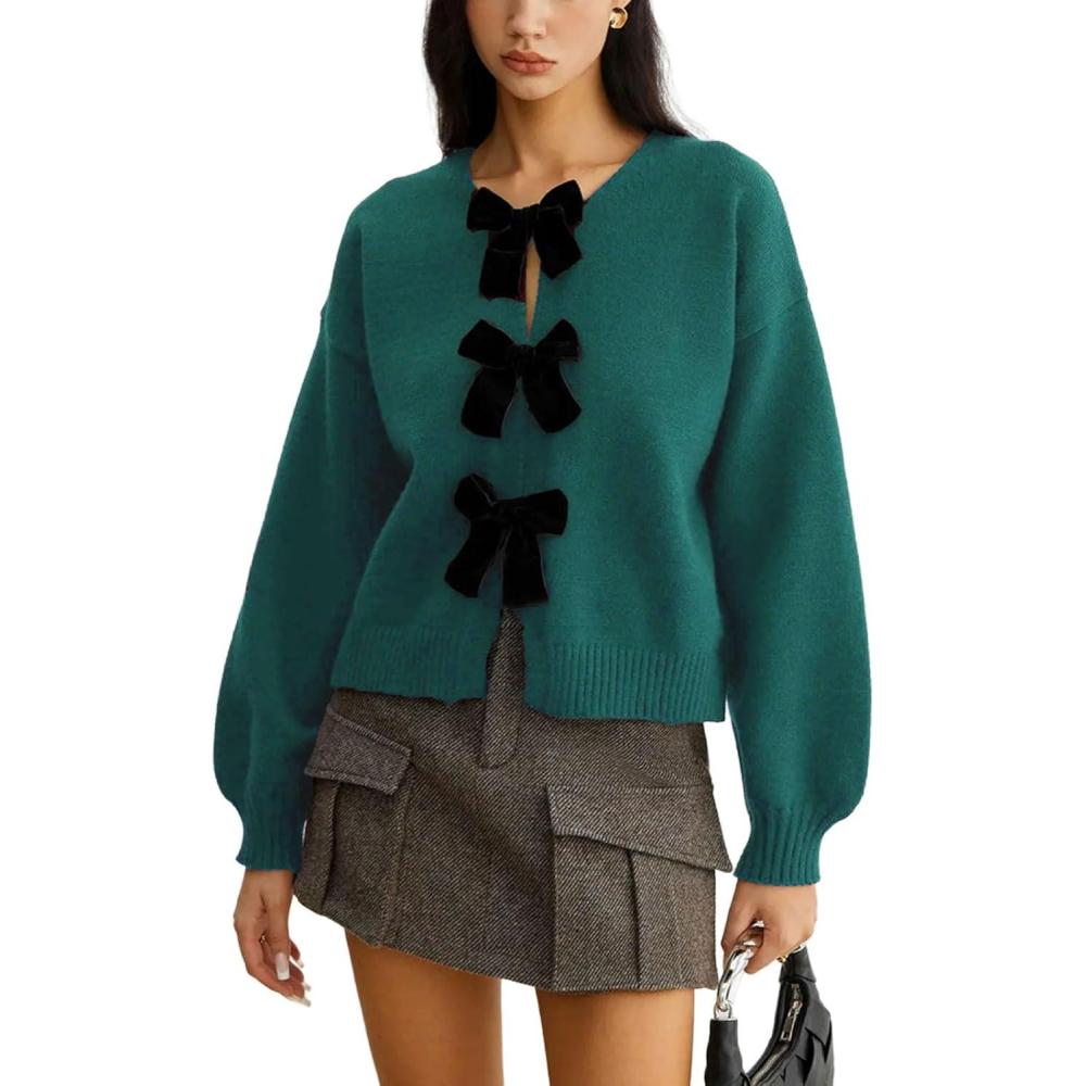 Women Fall Knit Sweater Dressy Velvet Bow Tie Front Short Oversized Pullover Tops Casual Jumper Cute fall sweater/ Crew neck cozy sweaters for women/ Lantern long sleeve cardigan sweaters for women parties Womens cropped sweater Oversized sweater for women loose fit wine fall cardigans for women trendy womens cropped sweater crew neck knit pullover tops cute lightweight knitted sweater fall outfits winter outwear elegant velvet bow decorated casual sweater petite women fashion clothing long sleeve old money clothes women trendy navy sweater stylish