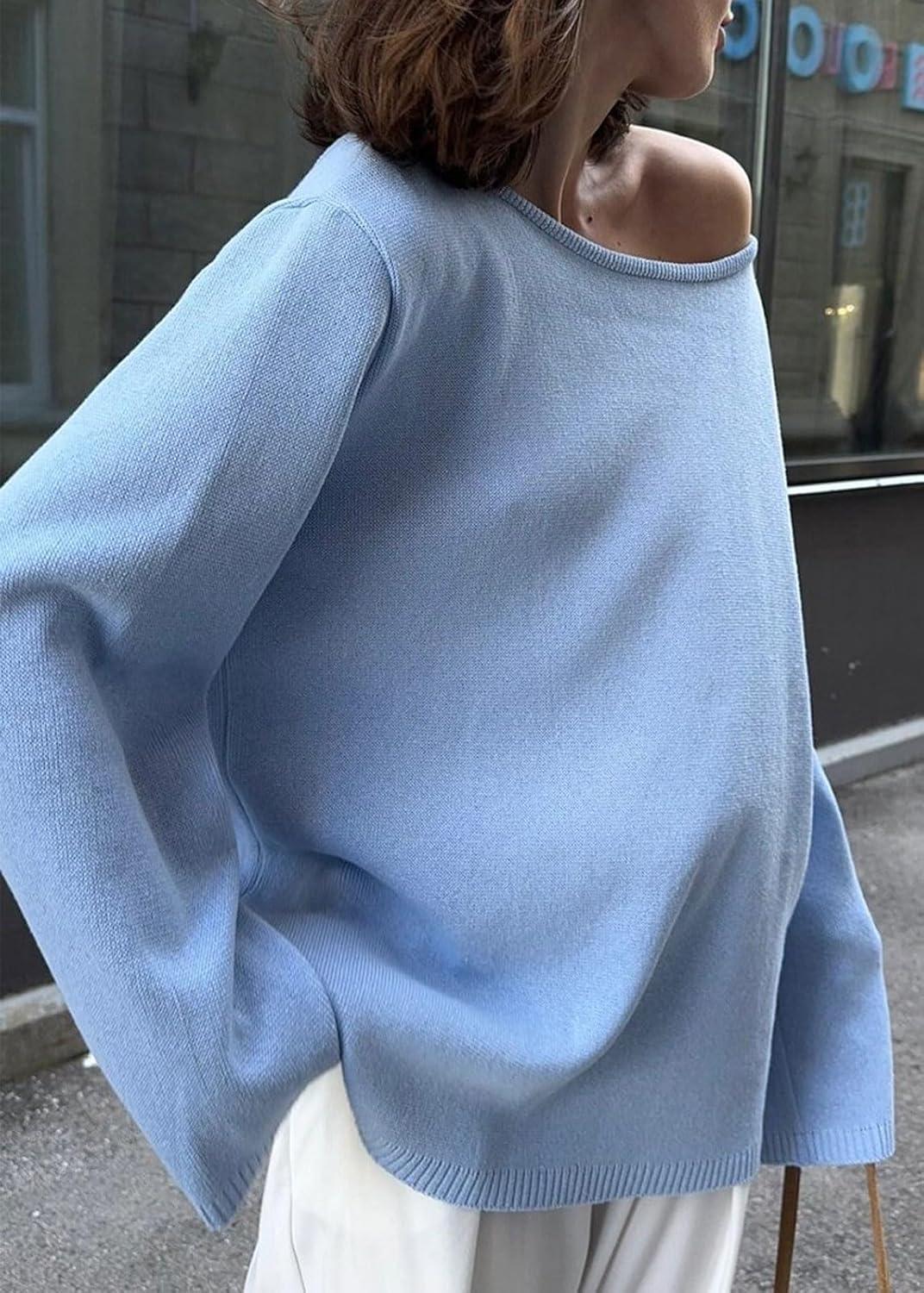 Be the first to review “CHARTOU Women Fall Lightweight Oversized Sweater Scoop Neck Backless Cotton Pullover Sweater(Blue)”