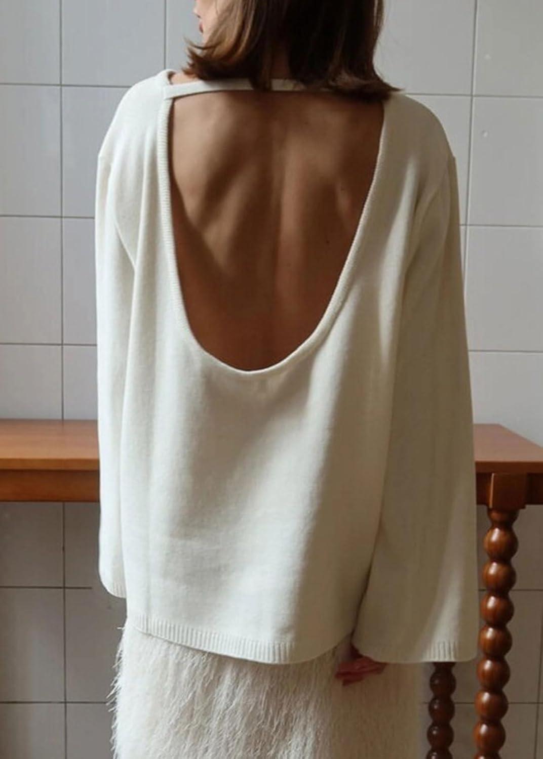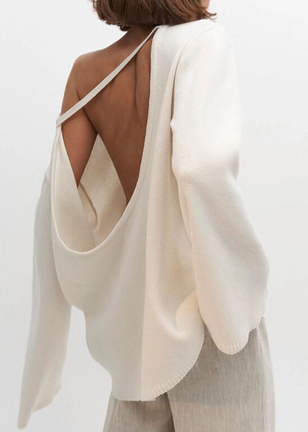 Women Fall Lightweight Oversized Sweater Scoop Neck Backless Cotton Pullover Sweater Stylish plain rib knit sweater for women lightweight/ Casual loose long sleeve jumper/ Comfy knitwear crewneck pullovers top/ Dressy open back plain sweater outwear elegant backless sweater women premium stretch draped knitwear soft fall outfits cozy sweater for women pullover sweaters Women lightweight knit sweater oversized pullover sweater fall open back hollow out knit sweater cotton casual dressy jumper stretch crewneck pullover tops y2k rib knitwear loose fit winter outfits slouchy draped cardigan sexy backless thin sweater