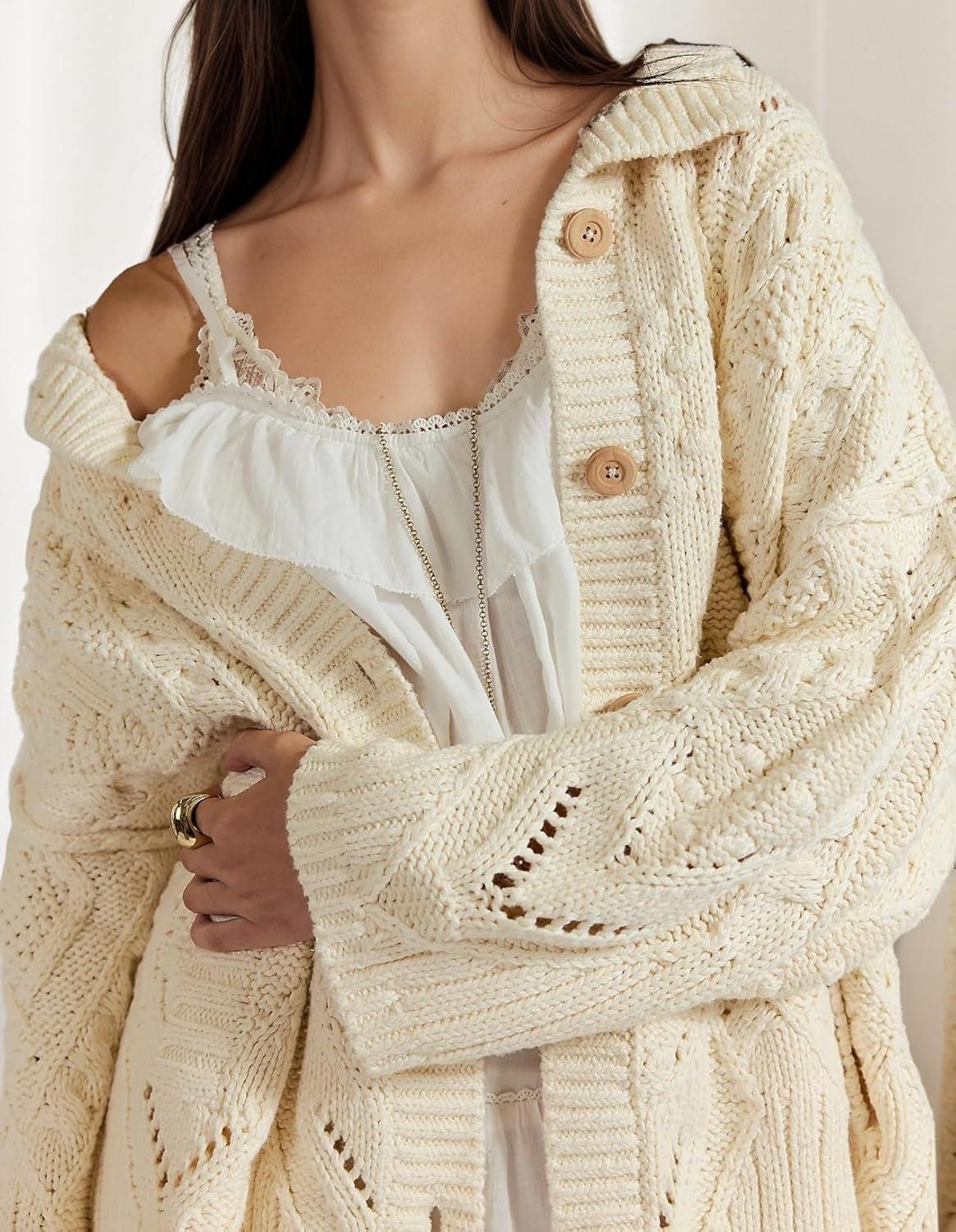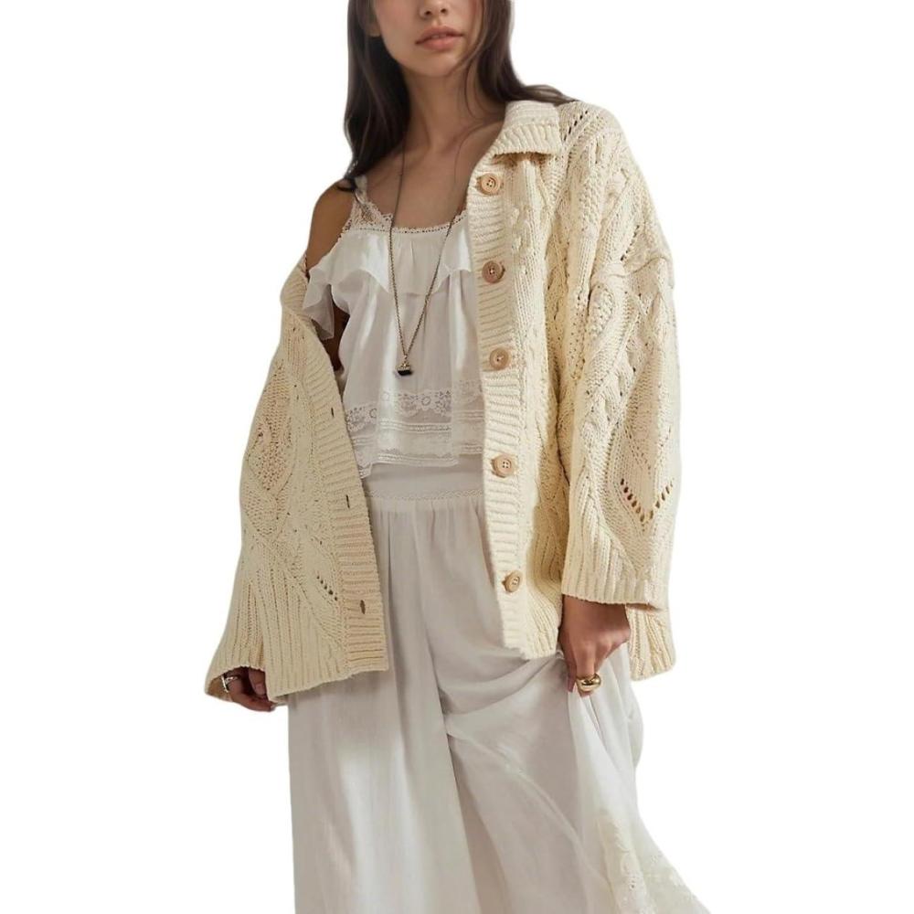 Warm Thicken Cable Basic Sweater Cardigan/ Lapel Long Sleeve Knitwear Top/ Warm Button Down Boho Sweater/ Loose Fit Slouchy Outwear Cardigan for Women
