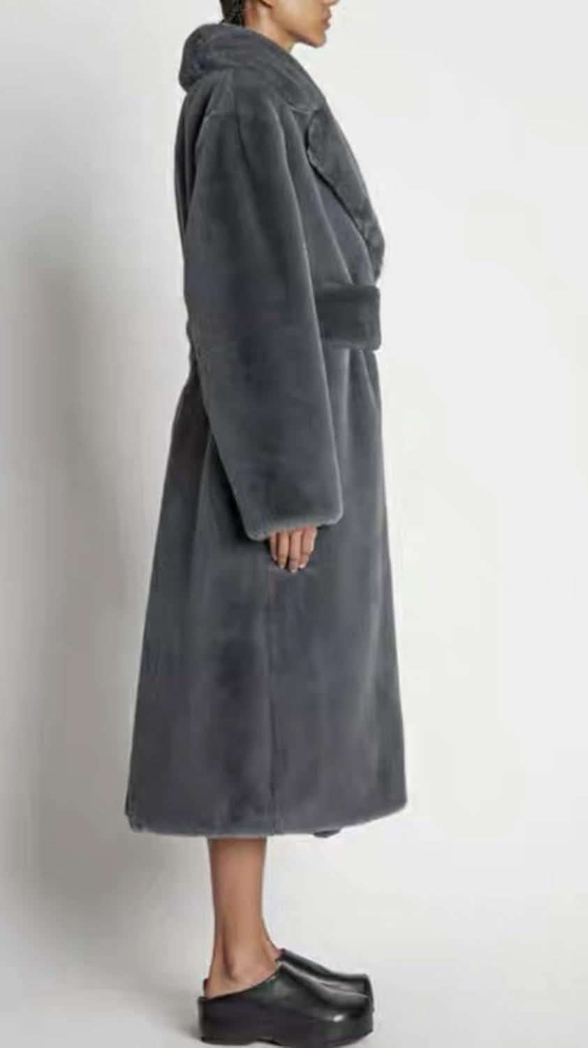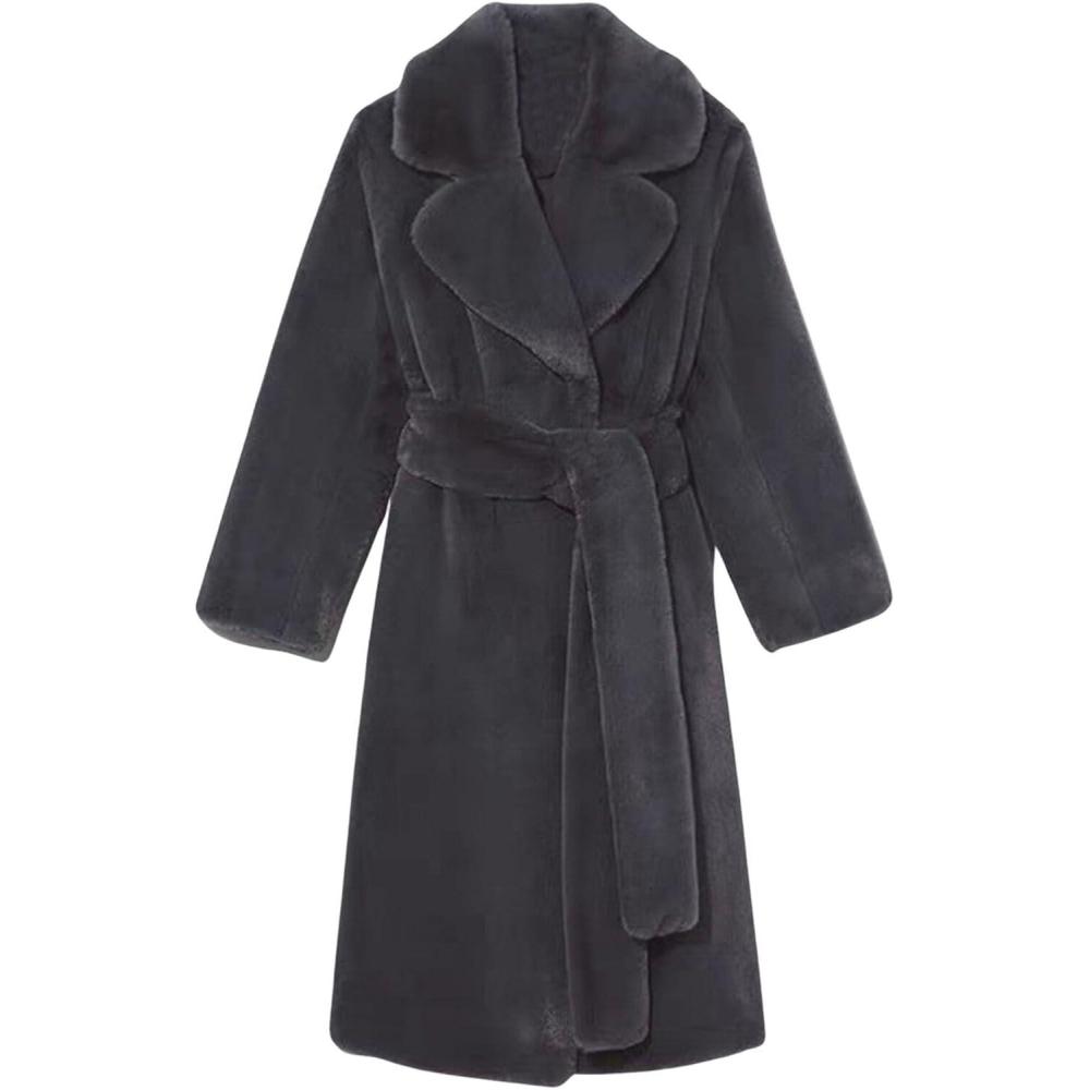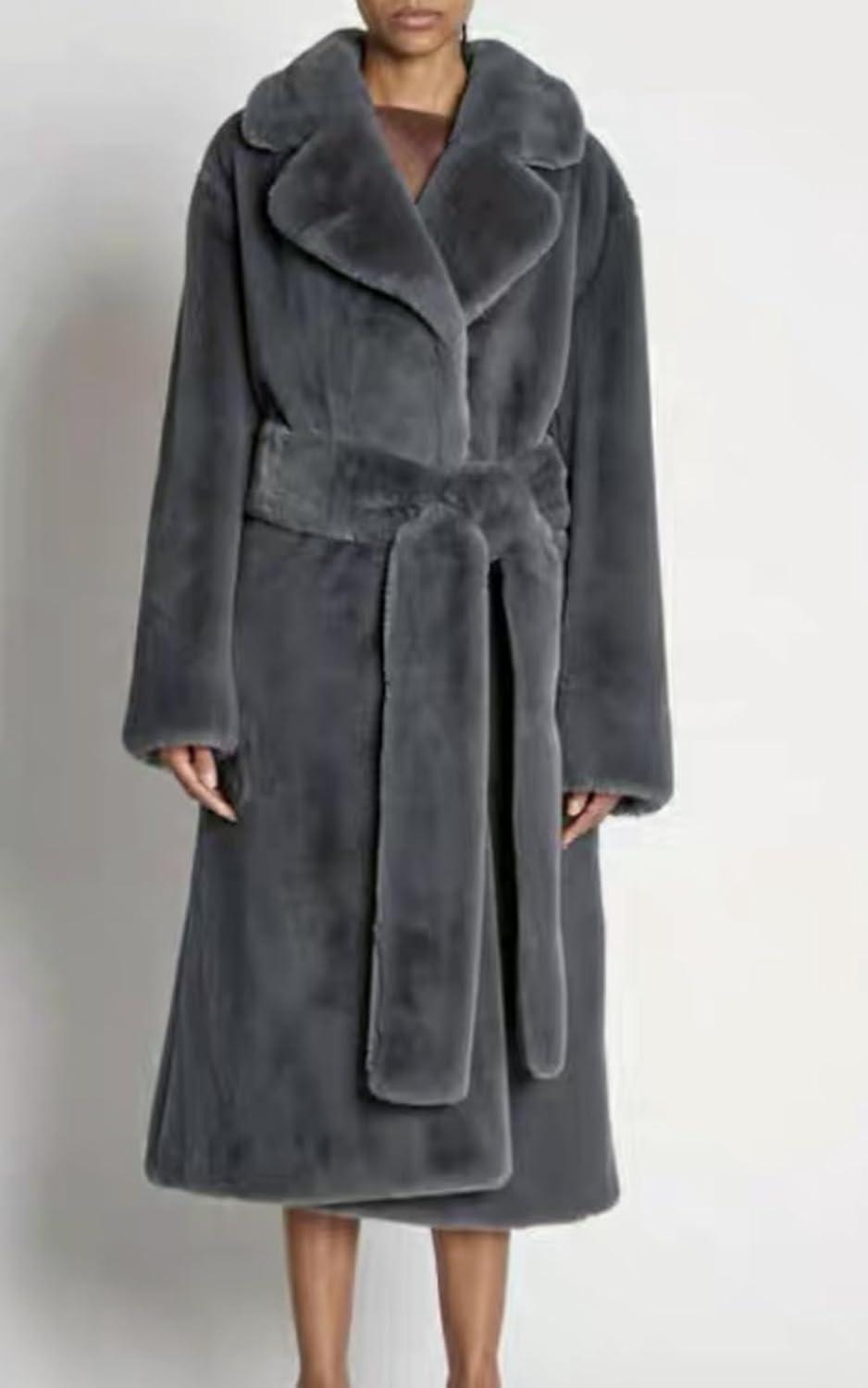 CHARTOU Women Faux Fur Coat Long Sleeve Winter Fluffy Jacket Overcoat Warm Fuzzy Coat Cardigan with Belt Outdoor(Dark Grey)