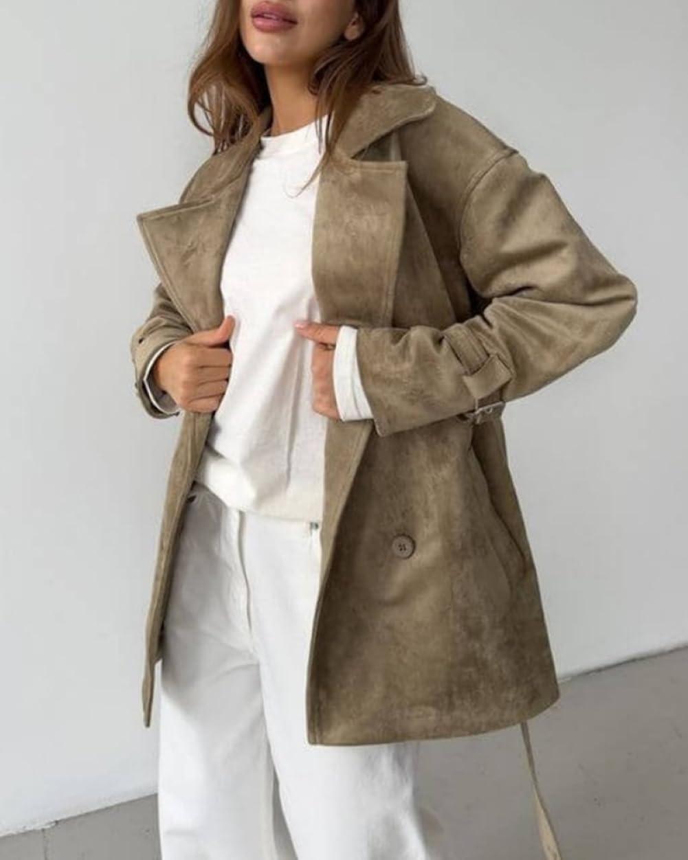 CHARTOU Women Faux Suede Leather Jacket Coat Oversized Button Down Long Sleeve Outwear Coat with Belt(Khaki)