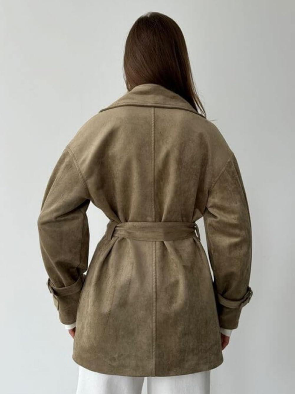 CHARTOU Women Faux Suede Leather Jacket Coat/ Button Down Long Sleeve Outwear Coat/ Belt Notch Lapel Short Jacket/ Women Trendy 2025 Fall Vacation Maillard Outfits