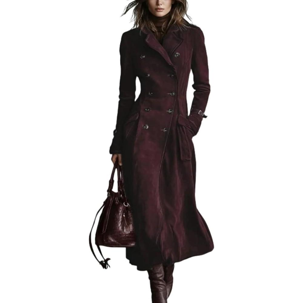CHARTOU Faux Suede Leather Long Jacket for Women Winter Coat/ Notched Lapel Trench Peacoat for Women Business Casual Work/ Double Breasted Outwear Trench Coat: Premium brown suede fabric offers a soft, velvety texture + sleek black leather piping (on collar, seams, cuffs) adds sophisticated contrast—blending luxury with retro trench style. Timeless trench silhouette works for both casual (paired with sweaters/jeans) and semi-formal (matched with dresses/boots) looks—perfect for fall/winter daily outings or events