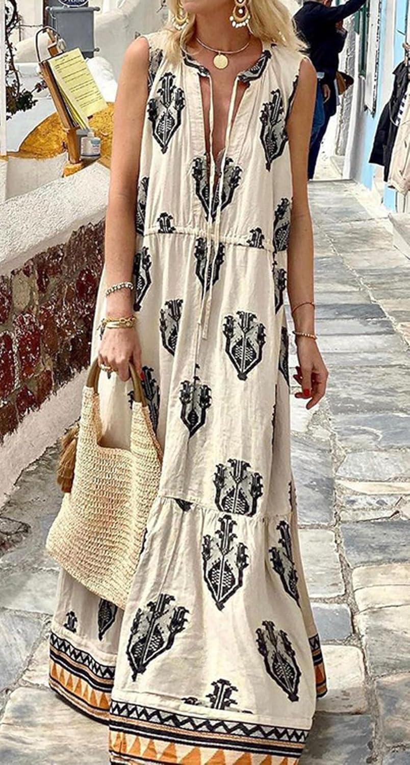 Boho Maxi Dress/Summer Sleeveless Dress/ Floral Bow Tie Long Dress/ Flowy Beach Dress
