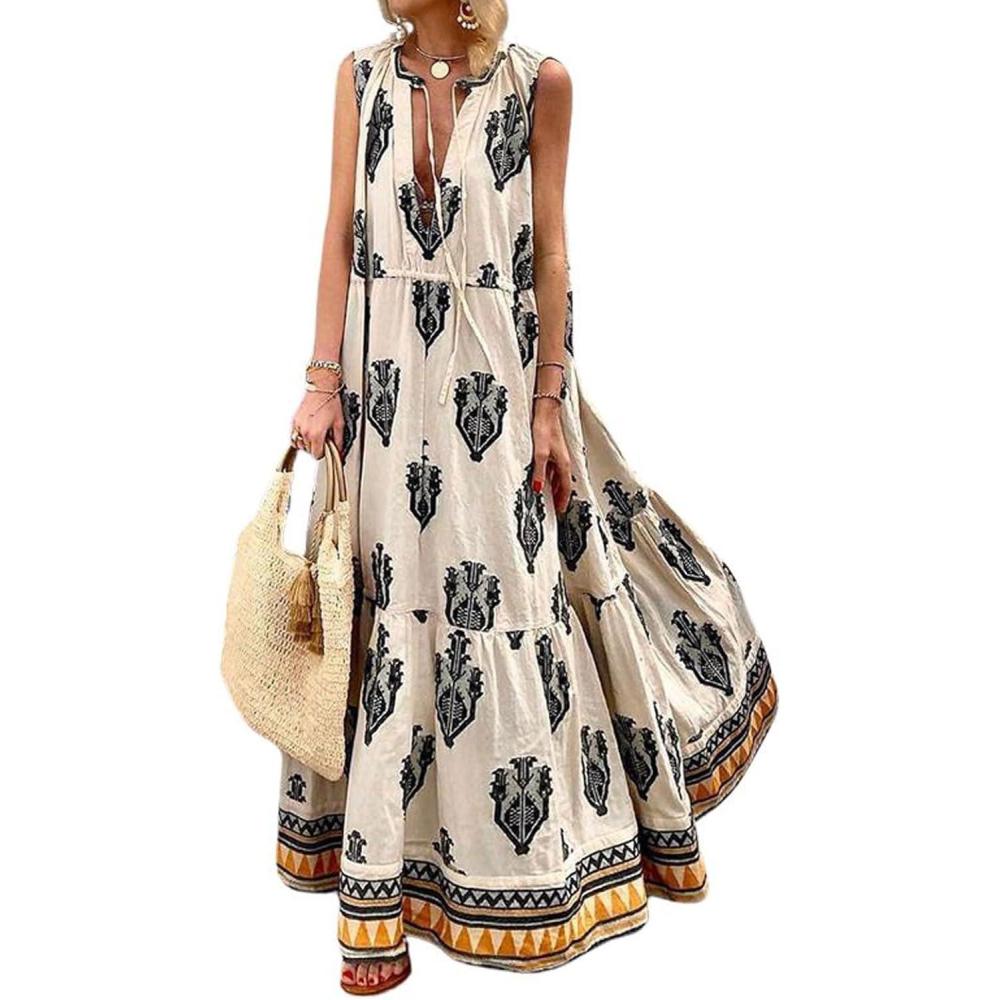 Get the CHARTOU Women Floral Maxi Dress Summer Sleeveless Boho Flowy Long Dresses(Beige) you want at a price you can afford with our markdown sale.