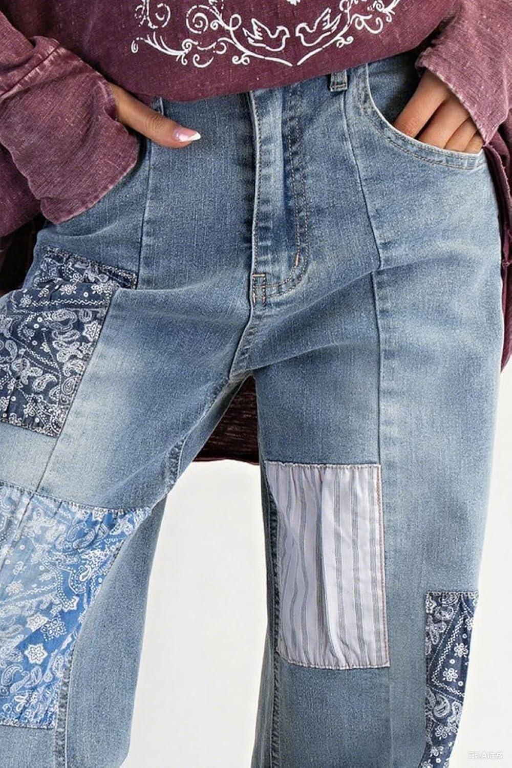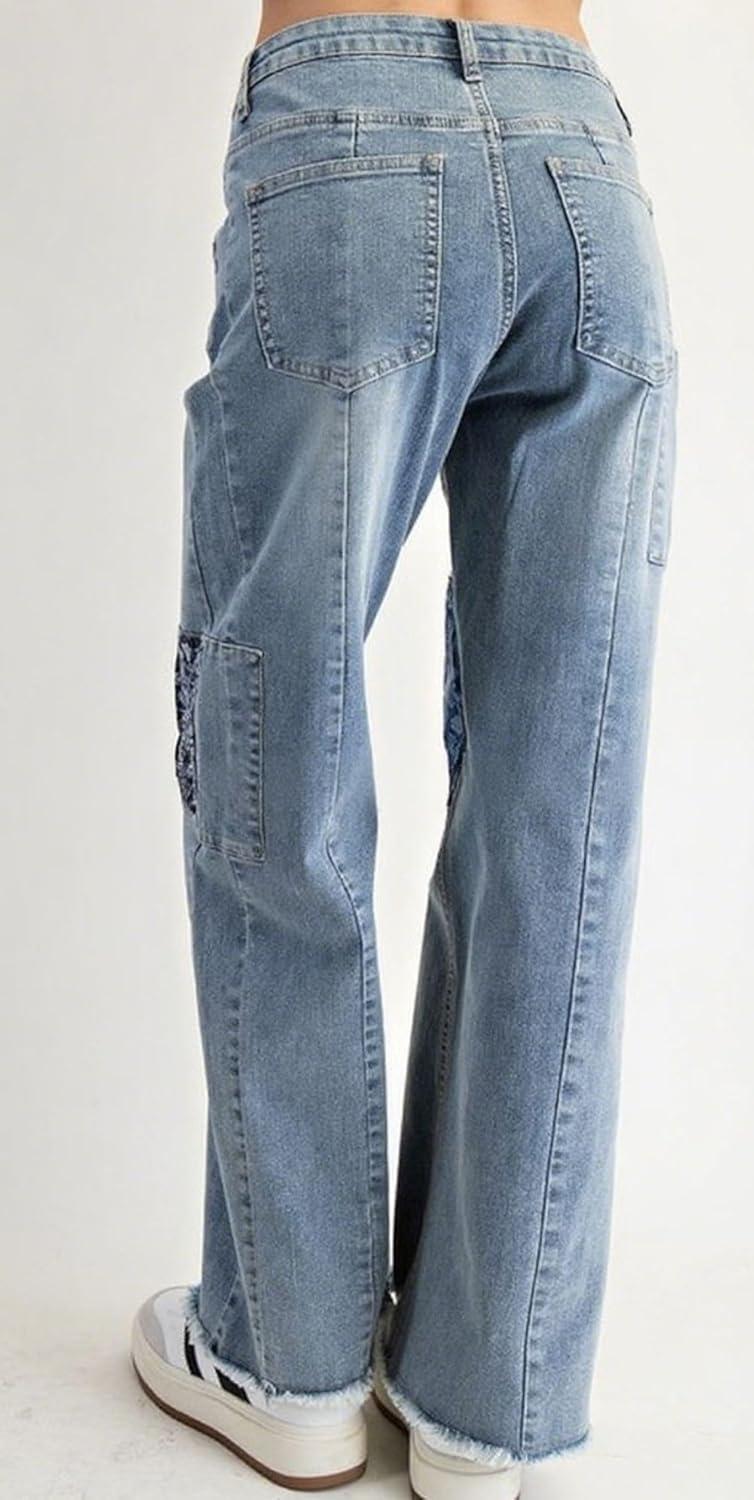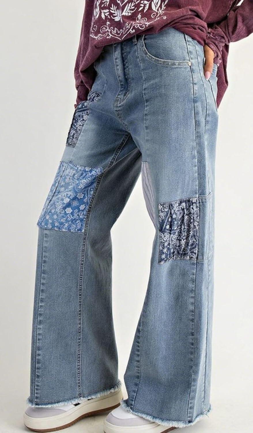 CHARTOU Women Denim Wide Leg Pants/ High Waist Flared Jeans/ Raw Hem Vintage Trousers with Pockets