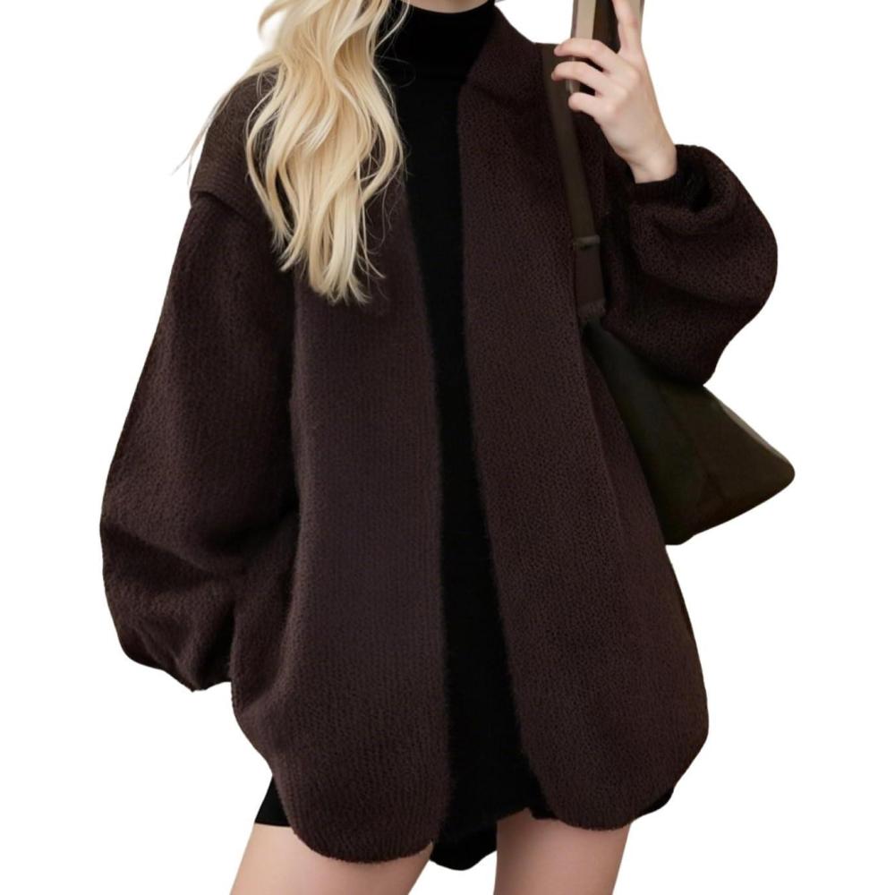 CHARTOU Women Fuzzy Open Front Cardigan Sweater Fall Winter Oversized Balloon Long Sleeve Outwear Coat(Coffee)