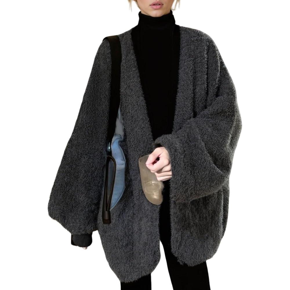 CHARTOU Women Fuzzy Open Front Cardigan Sweater/ Fall Winter Oversized Outwear Coat/ Slouchy Balloon Long Sleeve Casual Jacket/ Women Trendy 2025 Fall Winter Vacation Outfits