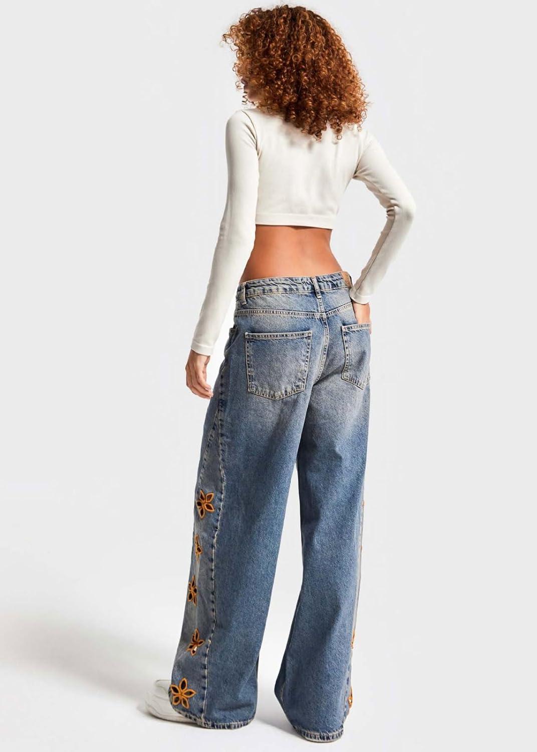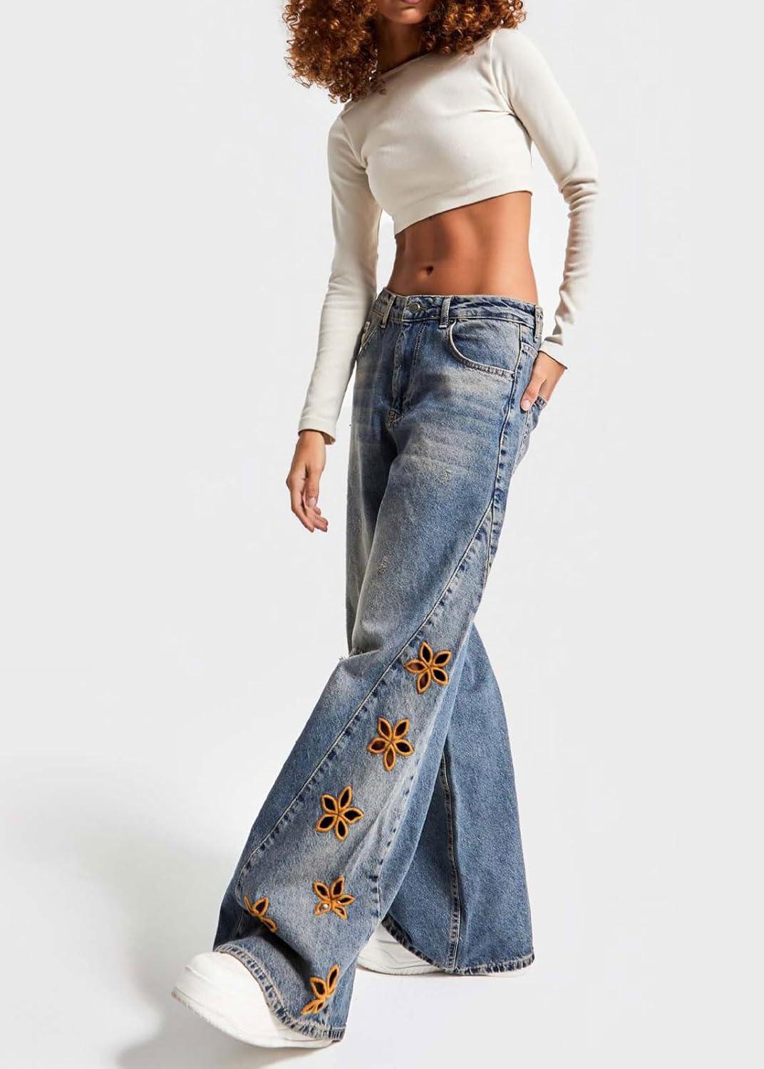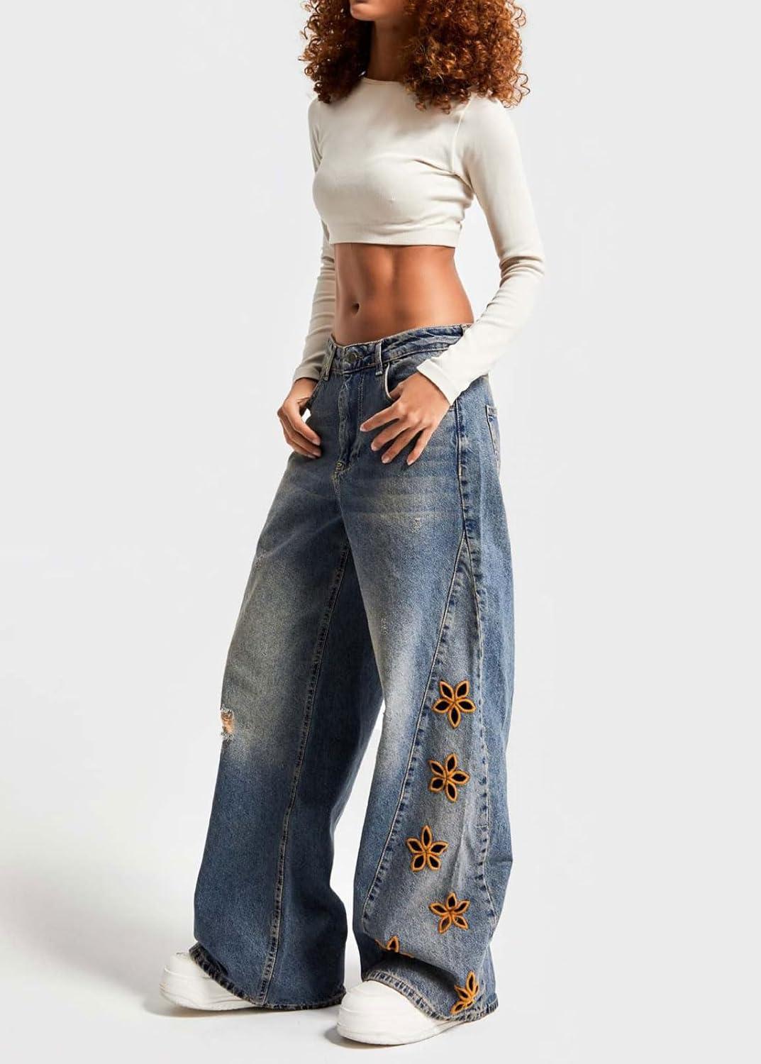 Women High Rise Baggy Jeans Floral Embroidered Ankle Pants Wide Leg Boyfriend Distressed Denim Jeans High waisted y2k horseshoes ankle jeans with pockets/ Stretch cargo denim pants patchwork ripped frayed jeans/ Flower barrel jeans parachute pants Chic flower embroidery jean women baggy pants casual wide leg jeans Y2k jeans for women high waisted y2k barrel sweatpants patchwork boyfriend streetwear patchwork jeans Women baggy barrel jeans mid rise wide leg denim pants embroidered floral jeans y2k boyfriend jeans cargo parachute pants with pockets cowgirl outfits western trousers cotton vintage flower horseshoe ankle pants patchwork streetwear teen