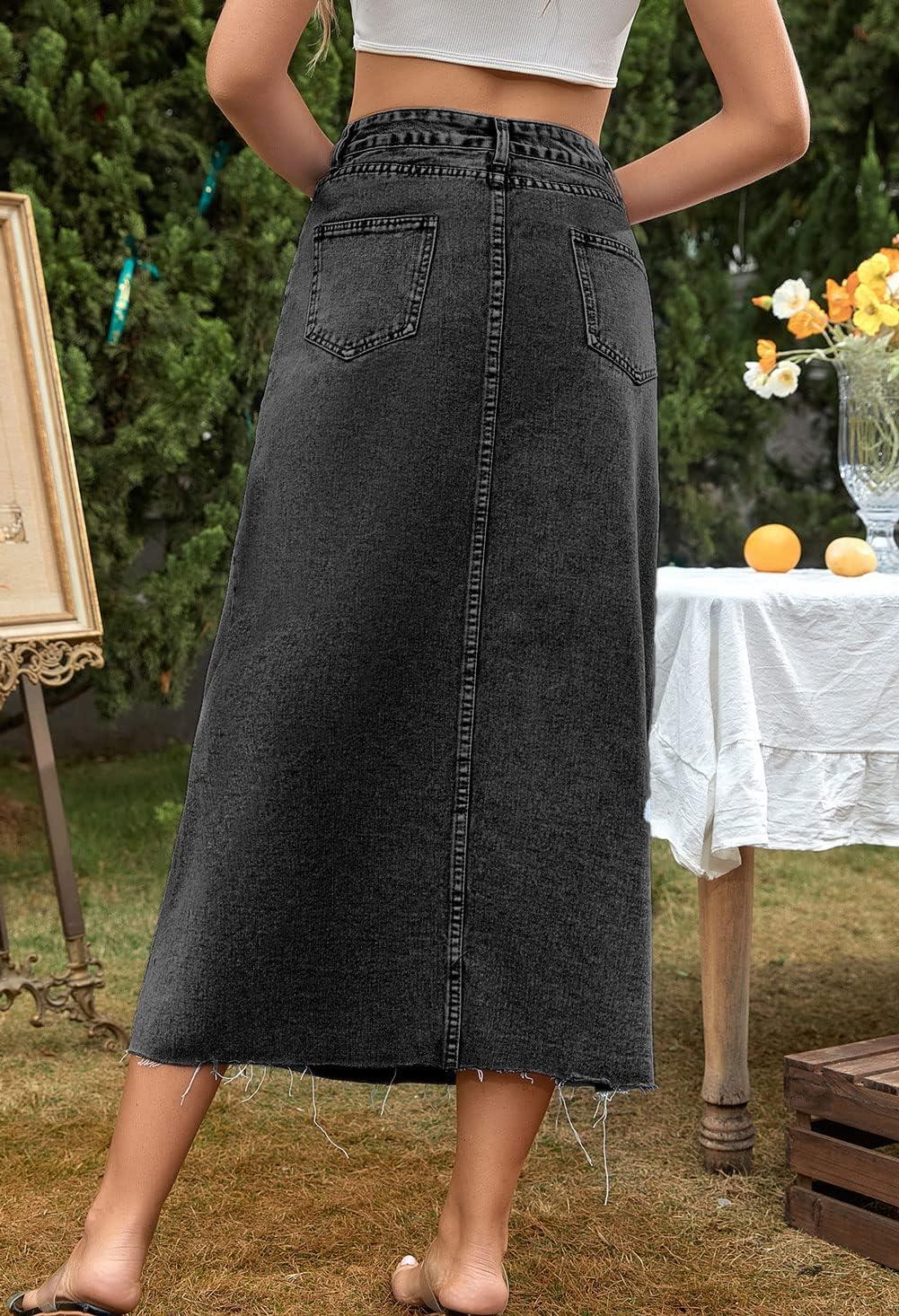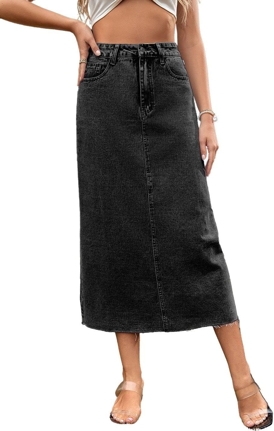 CHARTOU Women High Waisted Long Denim Pencil Skirt Jean Maxi Skirt A Line Skirt(Black)