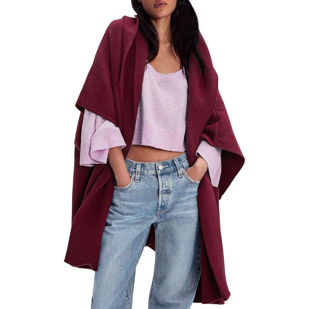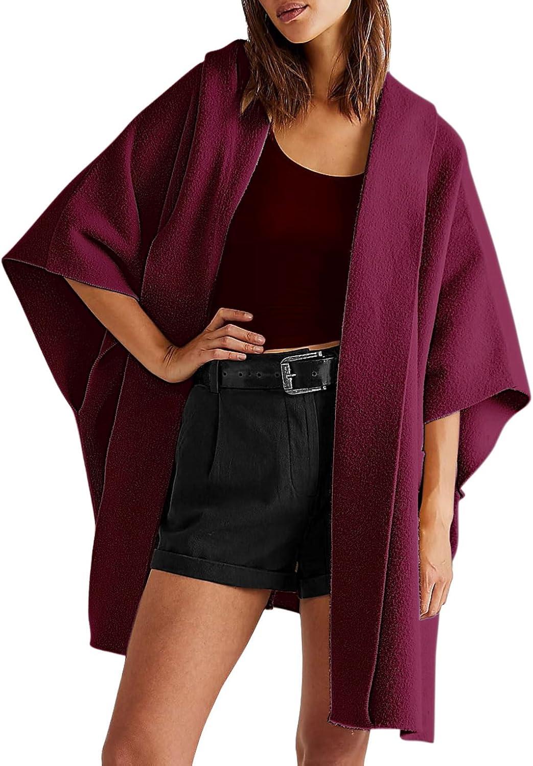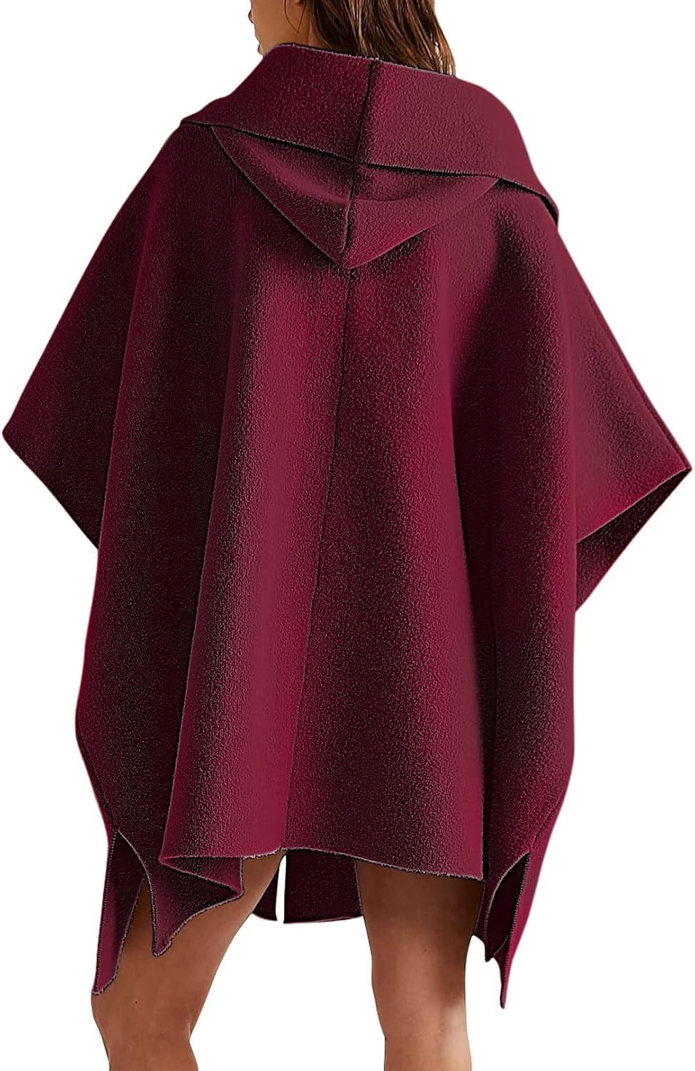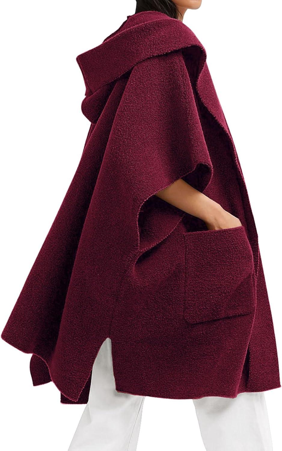 CHARTOU Women Hooded Kimono Cardigan Sweater Oversized Open Front Cardigan Jacket(Wine Red)