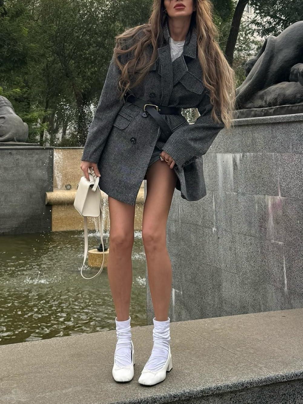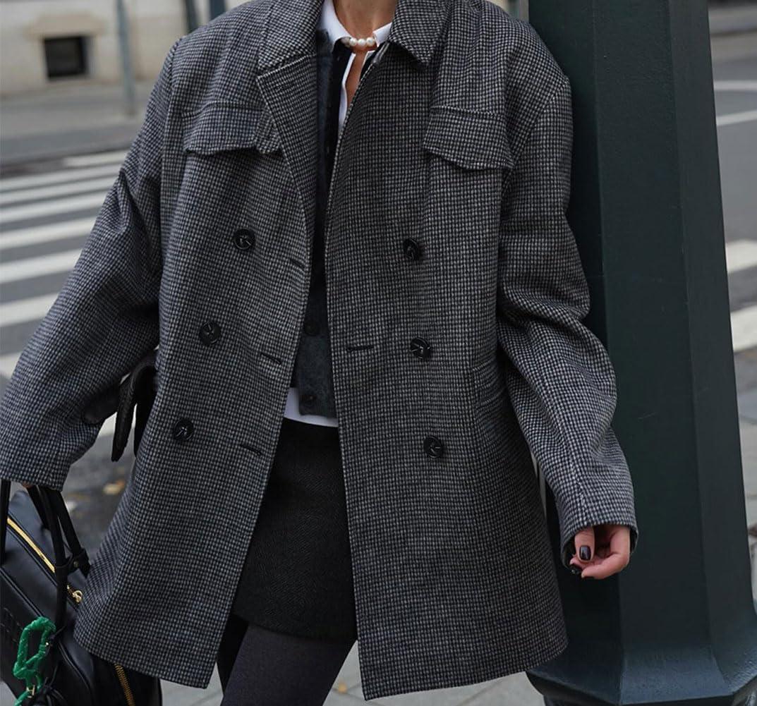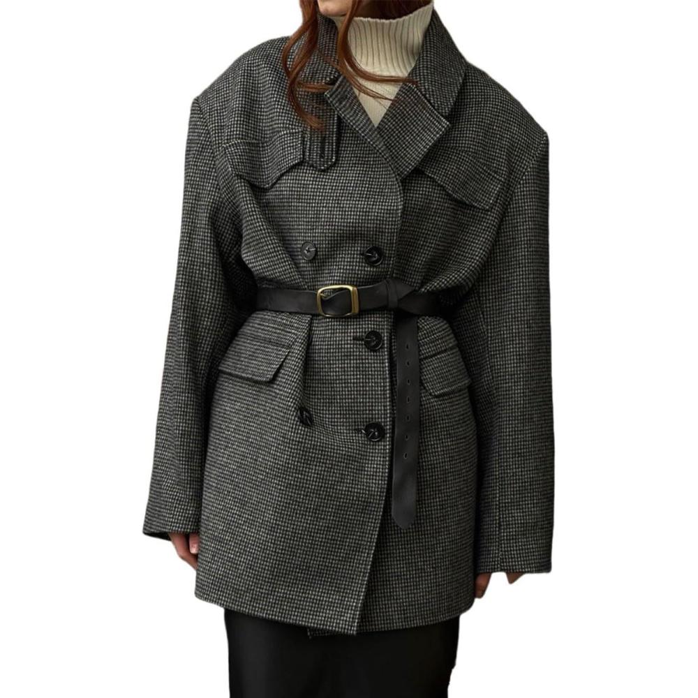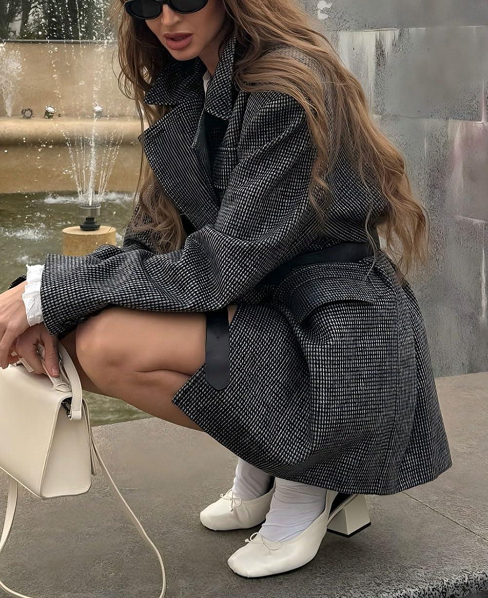 CHARTOU Women Houndstooth Wool Pea Coat/ Notch Lapel Long Sleeve Trench Coat/ Plaid Double Breasted Midi Overcoat