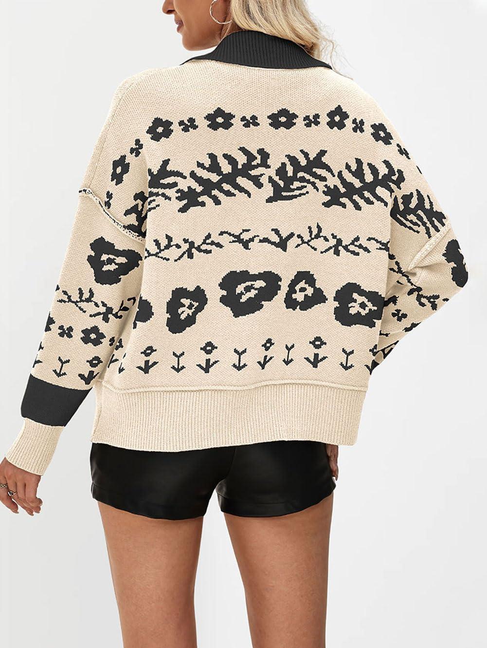 Women Lapel Collar Button Down Sweaters Open Front Cardigans Fall Sweater Coats/ Casual Loose Fit/ Polo Lapel Collar Cardigan Sweaters for Women/ Fall Button Sweater Coats for Women/ Size Tips: S=US 0-2, S=US 4-6, M=US 8-10, L=US 12-14, XL=US 16-18, XXL=US 20-22; Constructed with Soft Sweater Material, This Women Lapel Collar Cardigans Flexibility To Accommodate Various Body Shapes And Sizes, Effortlessly Providing A Flattering Fit/ Polo Collared Sweater Coats: This Fall Women Casual Sweater Coats Featuring Loose-Fitting, Trendy Floral Pattern And Raised Stitching, Easy To Wear With Your Wide Leg Pants, Skirt, Or Layer Over Your Basic Dress/ Design: Front Button Down Cardigans For Women; Comfort Fall Sweater Coats For Women/ Trendy Floral Pattern Sweater Tops For Women/ Turn Down Lapel Collar Sweater Tops/ Moderate Thickness/ Trendy Open Front Cardigan Coats for Women/ Occasion: Polo Collared Cardigan Coats For Women Fall Outfits/ Trendy Floral Pattern Sweater Coats For Women Hanging Out/ Casual Khaki Open Front Sweaters For Women Holiday Outfits/ Warm Fall Winter Sweater Tops For Women/ Slouchy Winter Vacation Sweater Outfits For Women