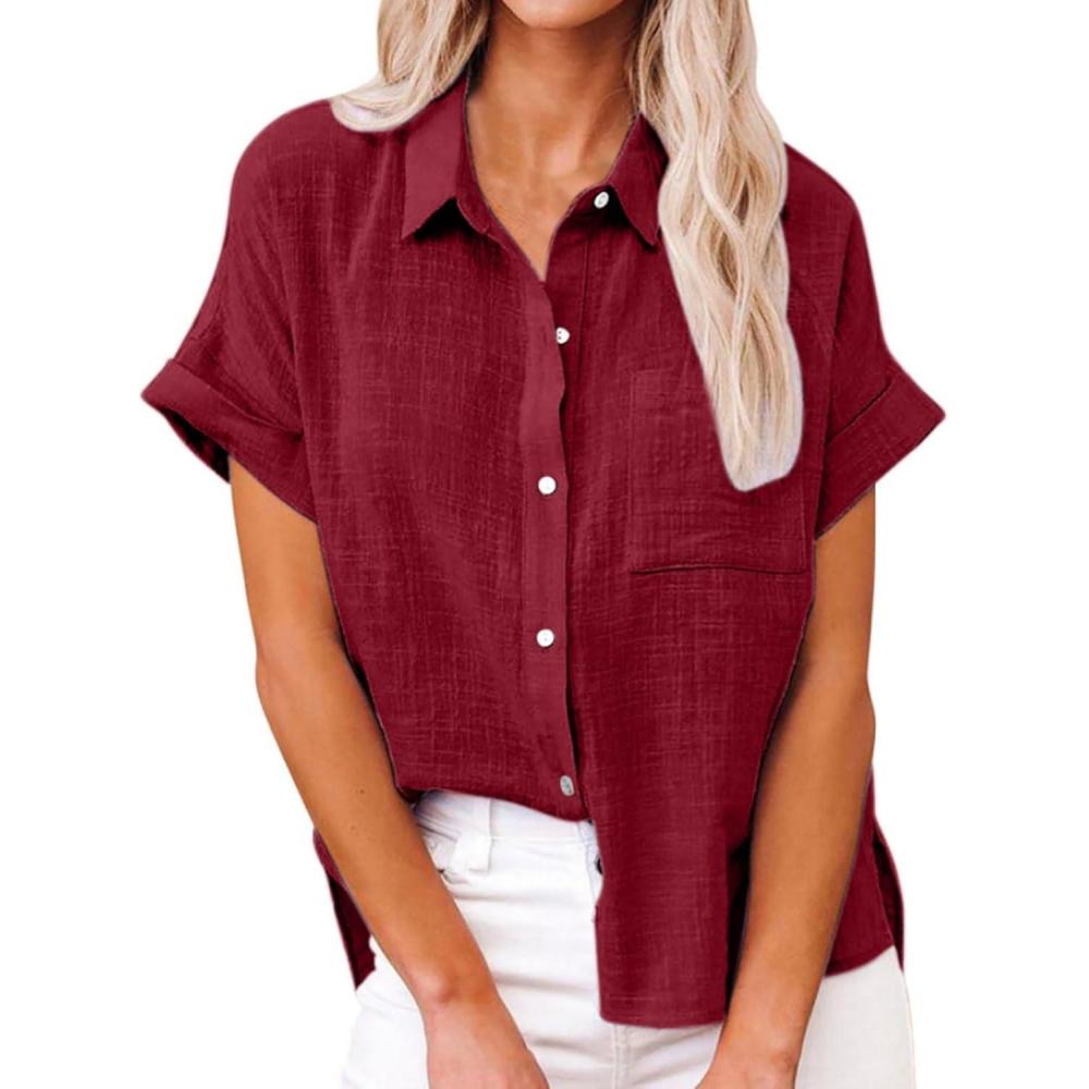Get more for your money with our exclusive bundle deals on CHARTOU Women Linen Button Down Shirt Lightweight Short Sleeve T Shirt Blouse Summer Top(Winered) and accessories.