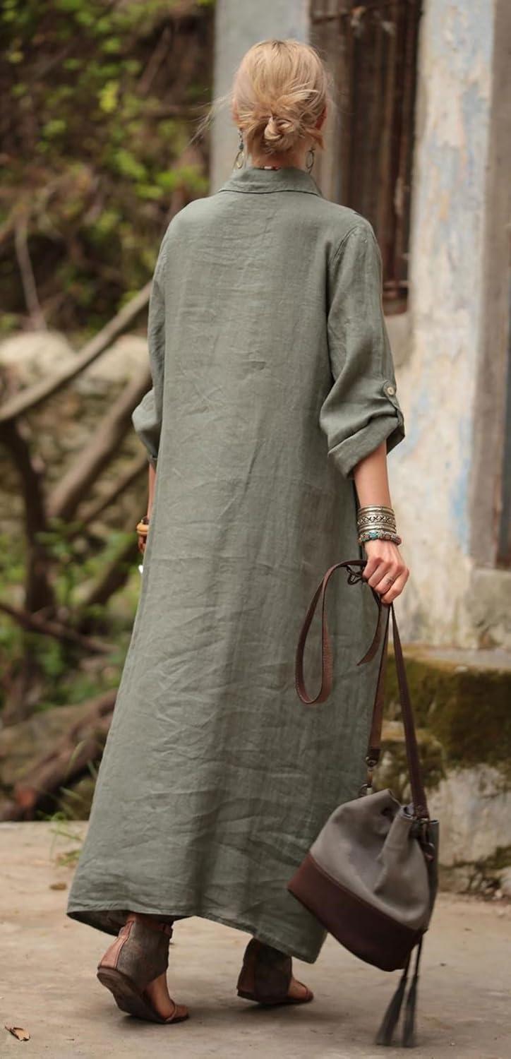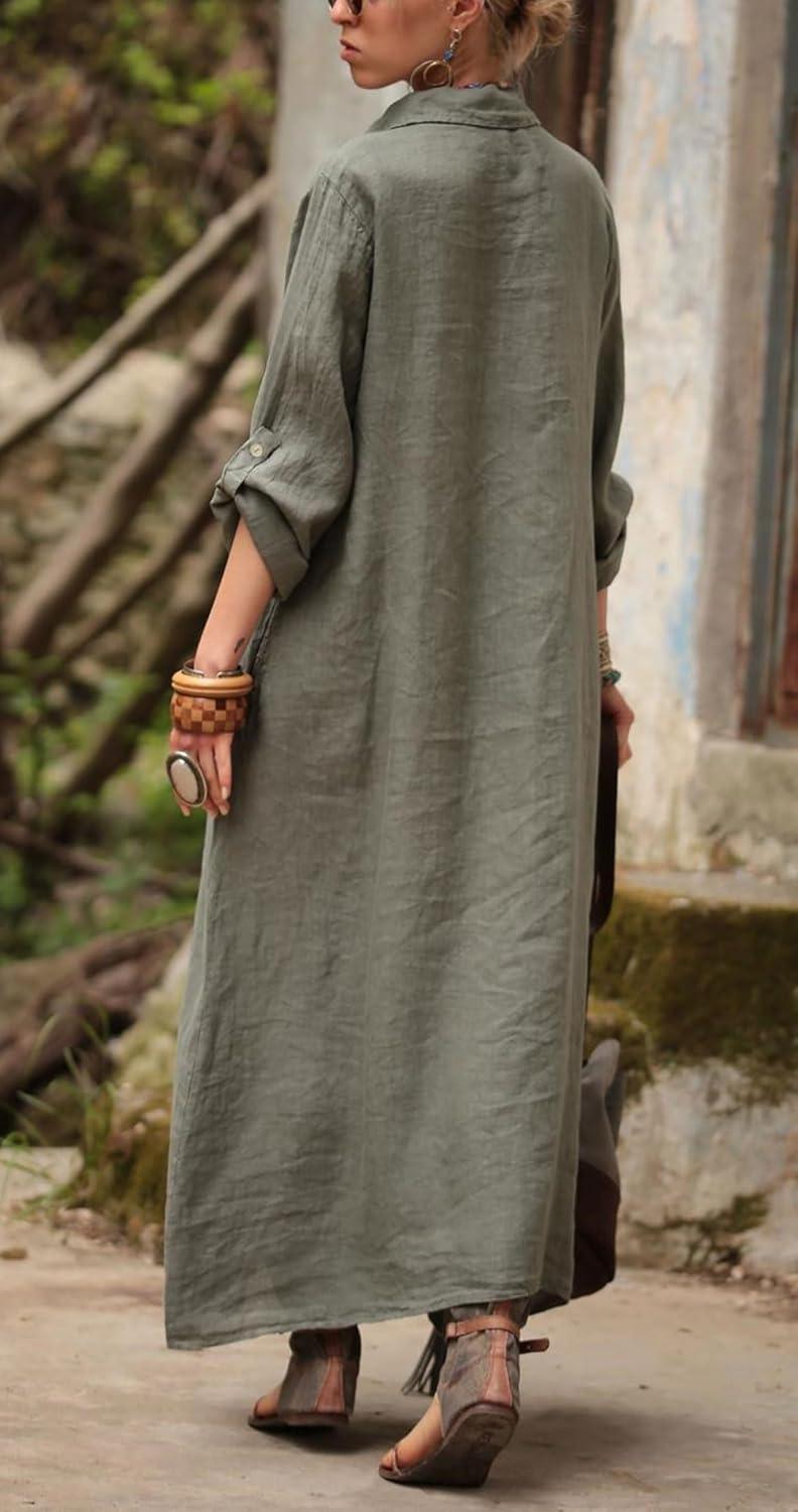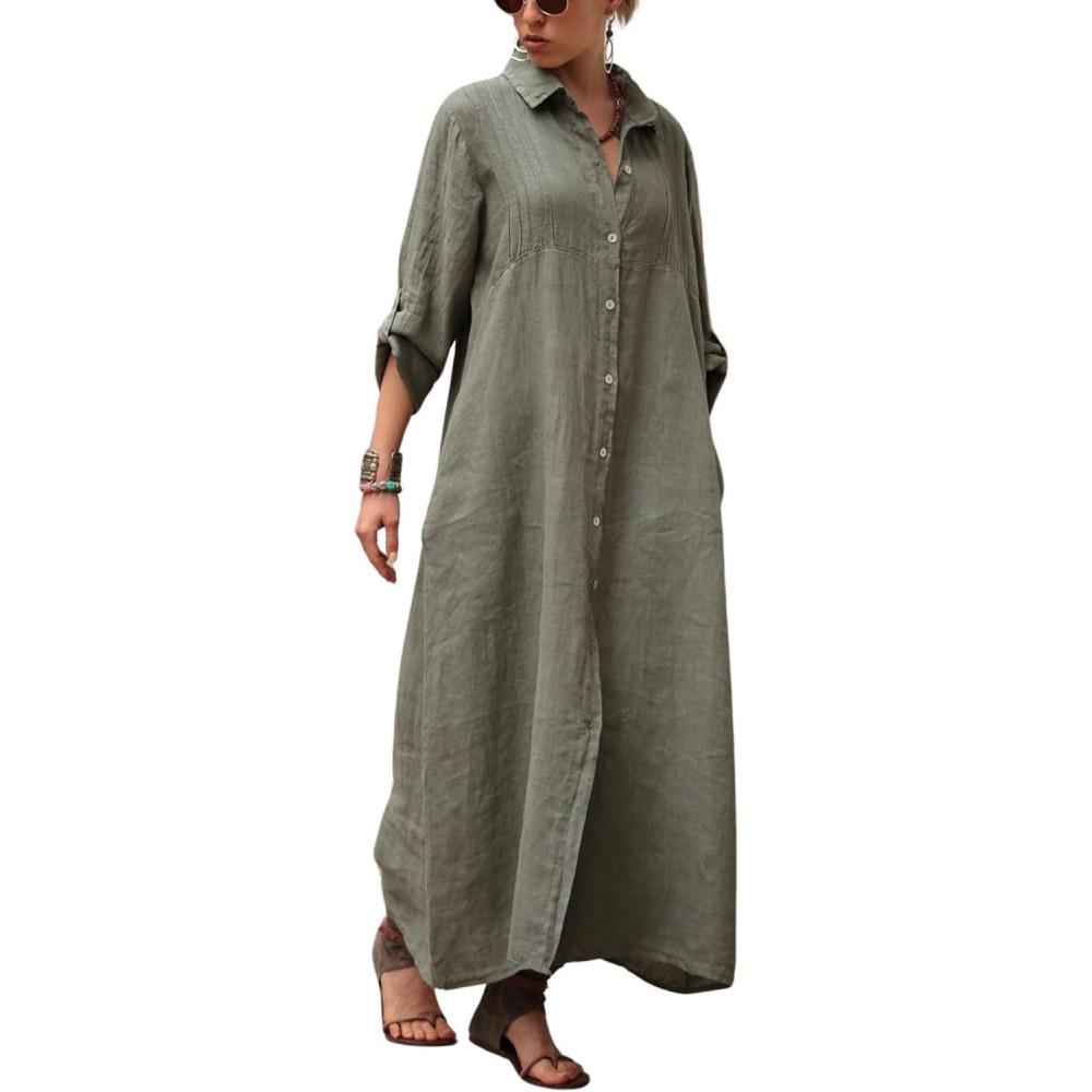 Long Summer Shirt Dress/ Button Down Maxi Blouse Shirt Dress/ Long Sleeve Shirt Maxi Dress/ Causal Loose Fit Extra Long Dress
