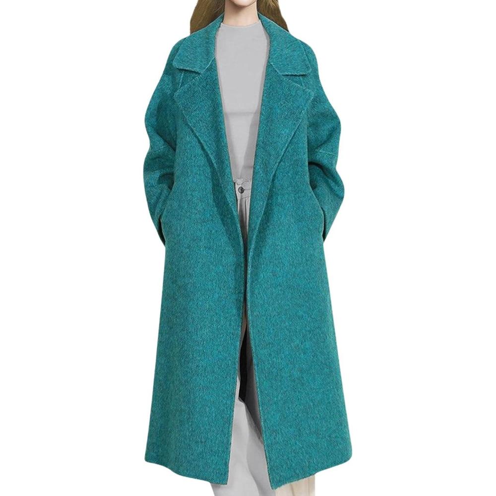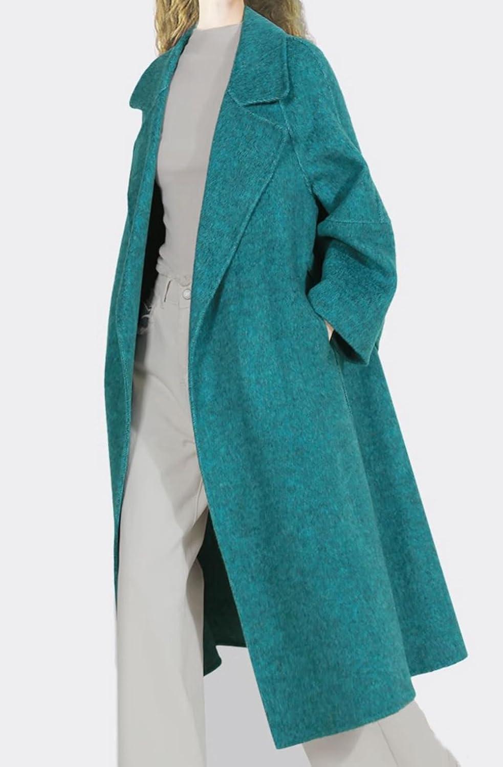 CHARTOU Women Long Winter Pea Coats Elegant Wool Blend Fall Jacket Overcoat with Belt(Peacoak)