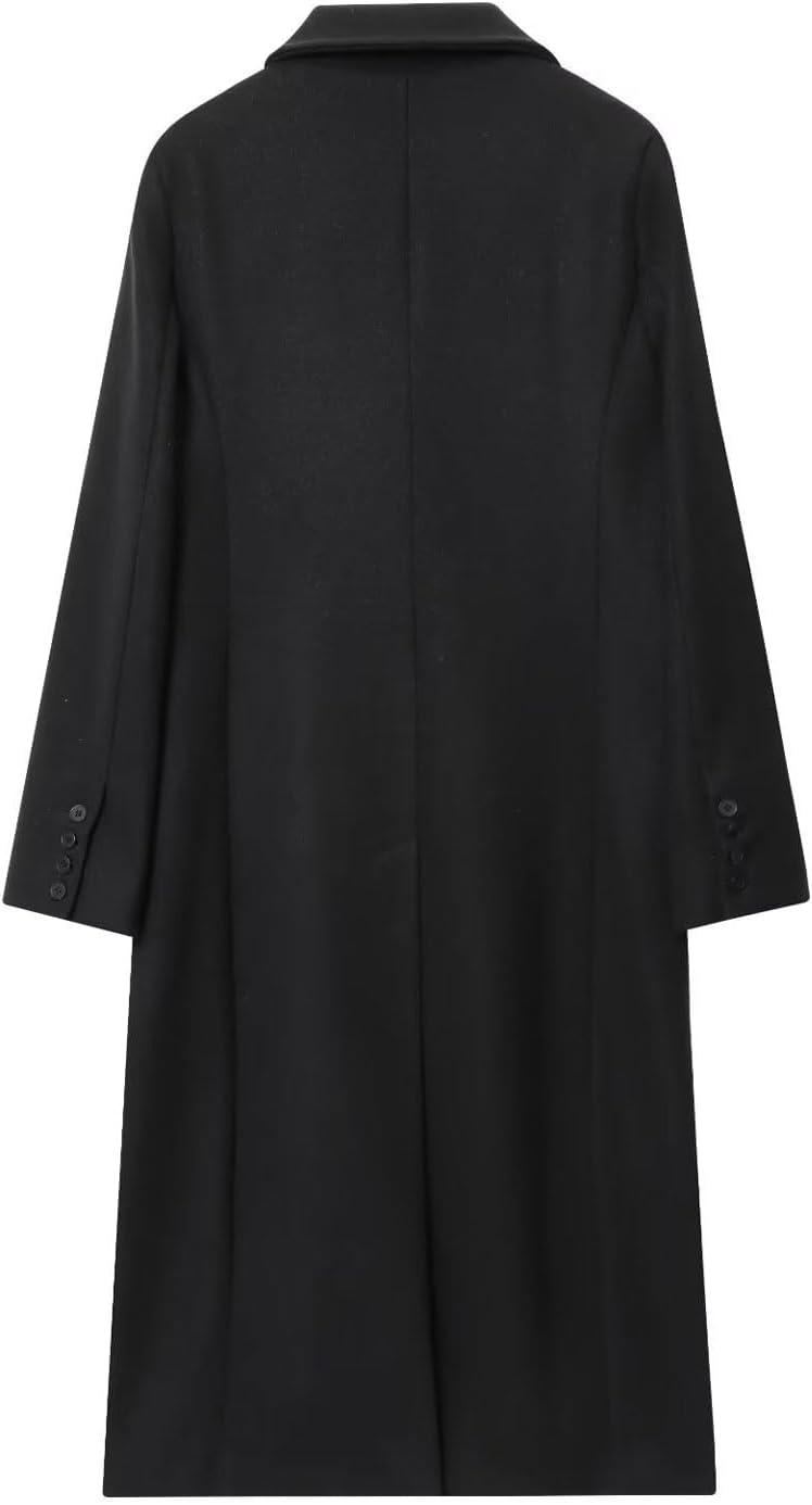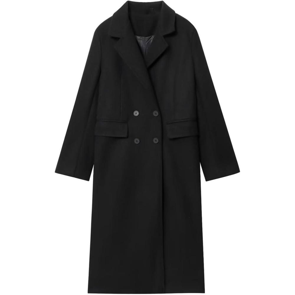 CHARTOU Women Long Winter Trench Pea Coat Double Breast Warm Overcoat Outwear(Black)