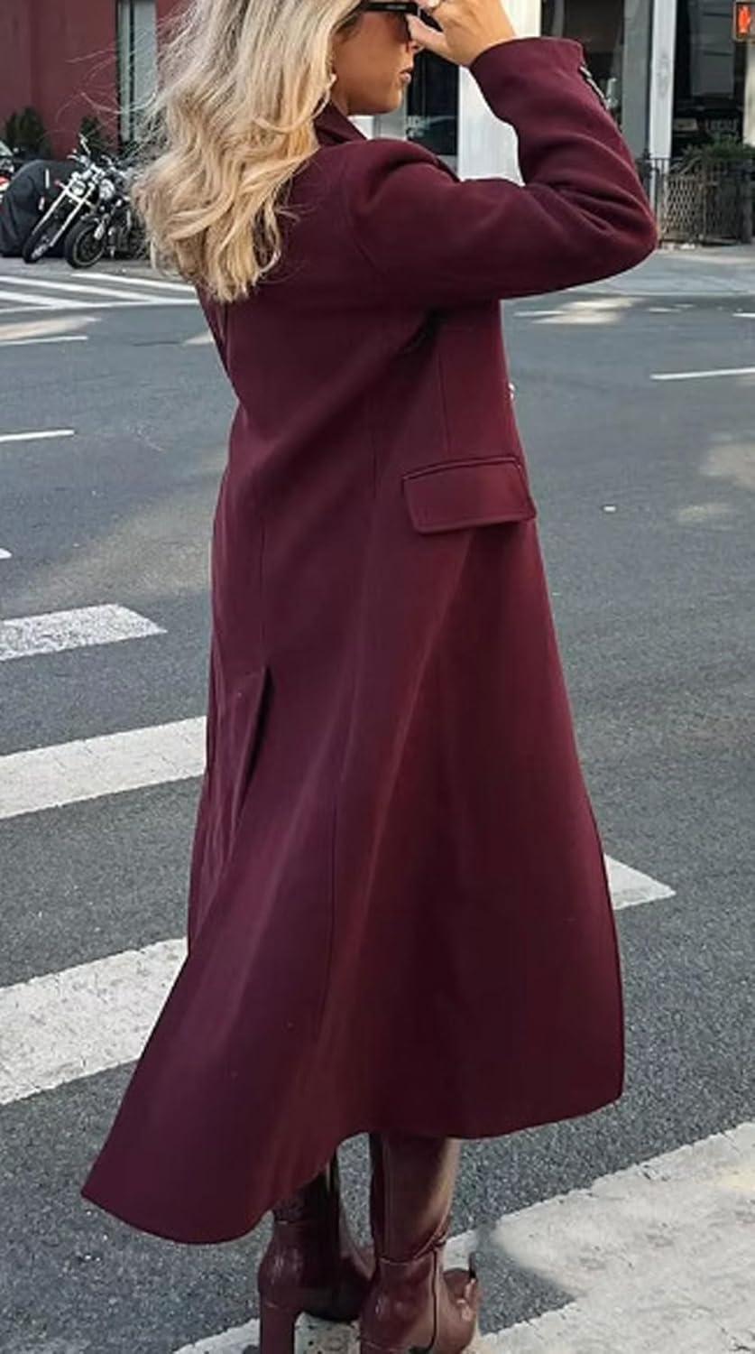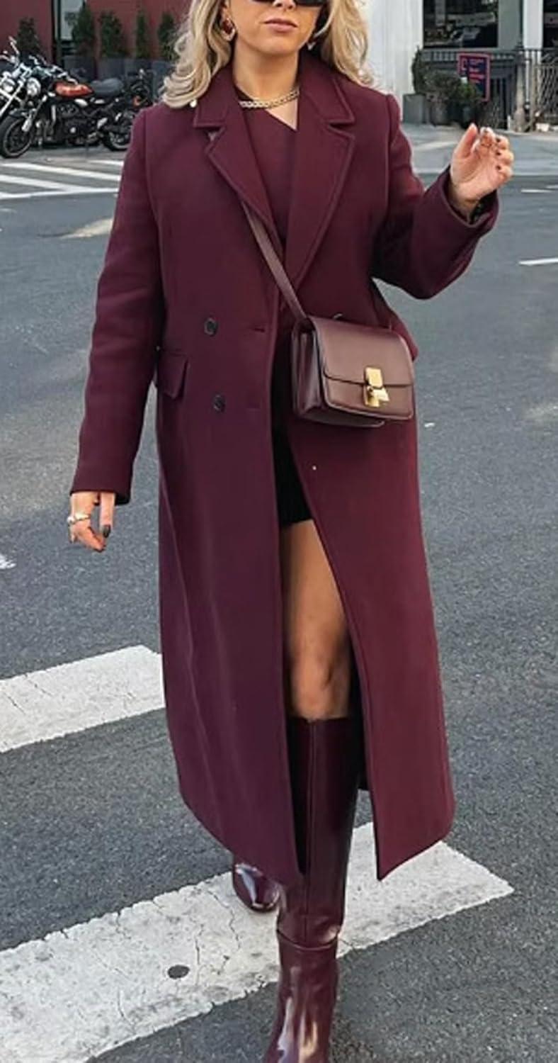 CHARTOU Women Long Winter Trench Pea Coat Double Breast Warm Overcoat Outwear/Extra Long Winter Trench Coat for Women/ Elegant Double Breast Warm Duster Overcoats/ Size Tips: XS=US 0-2, S=US 4-6, M=US 8-10, L=US 12-14, XL=US 16-18, XXL=US 20-22; Constructed with Thicken Polyester Material, This Long Women Winter Outwear Flexibility To Accommodate Various Body Shapes And Sizes, Effortlessly Providing A Flattering Fit/ Burgundy Long Trench Coats: This Long Winter Women Outerwear Featuring Regular Fitting, Trendy Burgundy Color, and Sophisticated Extra Long Length, Effortlessly Combines Comfort Fit and Fashion Look/ Design: Twill Textured Material/ Elegant Double Breast Trench Coats for Women/ Notched Lapel Collar Women Overcoats/ Two Side Pockets for Essential Carrying/ Back Slit for Easy Movement/ Moderate Thickness Keep You Warm During Fall, Winter, and Spring/ Occasion: Long Business Casual Work Trench Coats for Women/ Trendy Burgundy Overcoat for Women Fashion Outfits/ Long Fall Trench Jacket for Women Outing/ Long Winter Black Duster Pea Coats for Women Holiday Outwear/ Elegant Grey Winter Long Coats for Women Casual Outfits