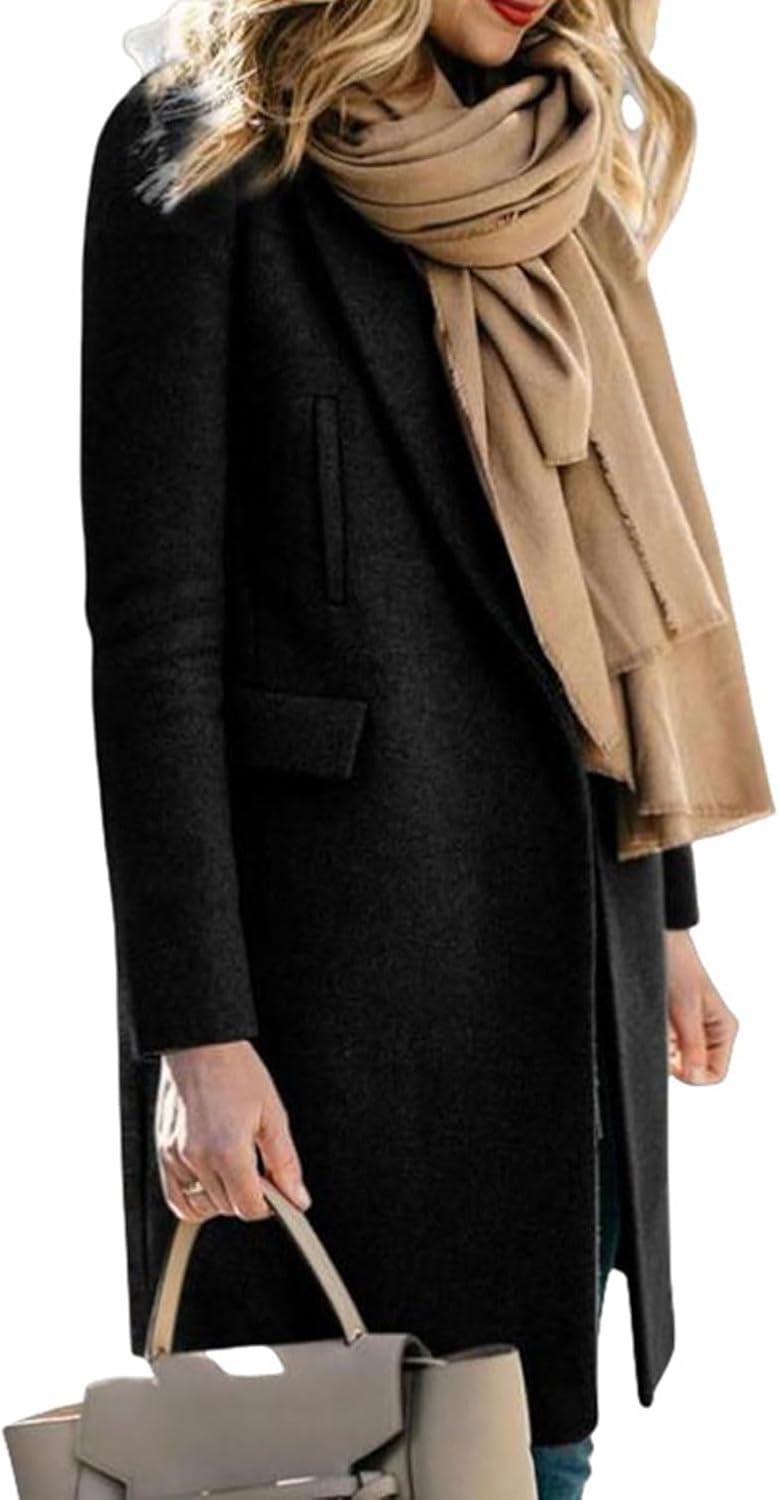 Women Long Winter Wool Coat Snap-Button Warm Trench Coat Fall Jacket Peacoat/ Long Wool Trench Coats for Women/ Warm Women Fall Winter Coats/ Elegant Midi-Long Peacoat/ Size Tips: S=US 4-6, M=US8-10, L=US 12-14, XL=US 16-18, XXL=US 20; Constructed with Warm Wool Blend Material, This Long Winter Wool Trench Coat Flexibility To Accommodate Various Body Shapes And Sizes, Effortlessly Providing A Flattering Fit/ Elegant Long Wool Jacket for Women: Long Winter Trench Coats featuring Wool Blend Material, Always Keep You Warm During Cold Days Without Bulky; Long Blazer Thicken Trench Coats, Effortlessly Combines Sophisticated And Stylish Look/ Design: Snap Button Long Fall Coats for Women/ Notched Tailored Collar Long Fall Coats/ Two Hand Pockets/ Hit Around Knee Length/ Regular Fit Long Winter Coats for Women/ Solid Color- Women Black Trench Coat Dressy, Trendy Long Coffee Over Coats, Elegant Purple Long Wool Winter Coats; Vivid Red Midi Long Wool Jacket/ Versatile Long Peacoat: Long Wool Black Coats for Women Casual Outfits; Women Fall Winter Business Casual Long Wool Blazer Coats/ Warm Long Wool Trench Coats for Women Hanging Outs/ Elegant Long Coats for Women Vacation Travel Outfits/ Lightweight Winter Long Wool Trench Coats for Party Outfits/ Long Wool Jacket for Women Holiday
