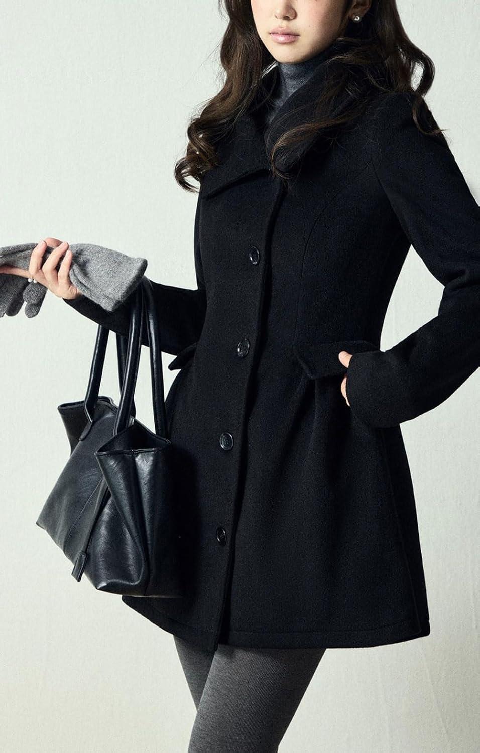 Warm long winter wool pea coat for women/ Cute peter pan collar princess style winter jacket/ Fall winter dressy single breasted woolen overcoat/ Fit Type: Slim fit. The CHARTOU cinched waist dressy pea coat offers a causal fit. Its irregular lapel collar and cinched waist puffy woolen coat provides elegant styling, making it wearable as both causal outfits, or business work jacket/ Features: Crafted from premium polyester and wool fabric for warmth and comfort to wear. Its vintage peter pan collar, slim fit cinched waist, and puffy a line silhouette design add stylish flair. Thickness-Medium, Softness-Soft. This cute single breast wool pea coat keeping you trendy and classy/ Occasion: Built for fall outfits for women 2025, these fashion clothing item are versatile for various occasions. Long winter warm wool pea coat for women casual jacket/ Peter pan single breast puffy wool overcoat for women gathering outfits/ Slim fit cinched waist woolen trench pea coat for women winter party outwear coats/ Winter fashion clothing vintage a line midi long wool trench peacoat for women drsesy business causal jacket/ Size Tips: XS=US 0-2, S=US 4-6, M=US 8-10, L=US 12-14, XL=US 16-18, XXL=US 20-22. This women’s casual wool pea coat features cinched waist and puffy a line silhouette, providing a flattering and fashionable look, make it perfect for all-day wear, whether you’re dressing up for a night out or keeping it casual