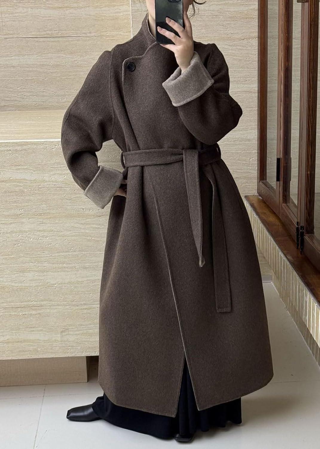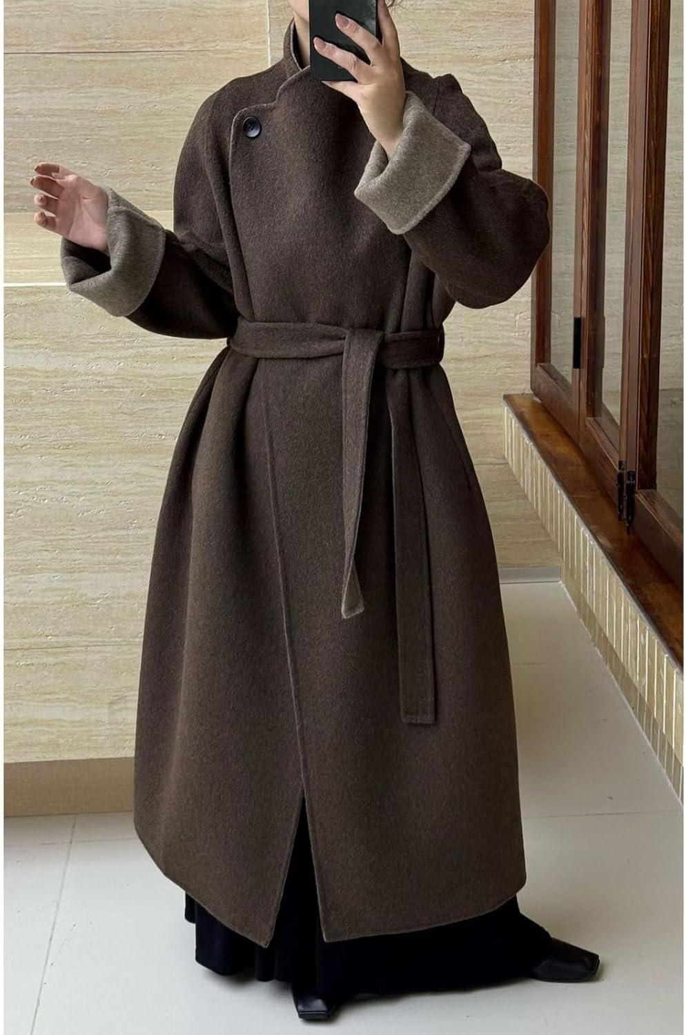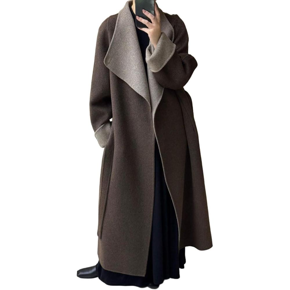Women Long Wool Trench Coat Winter Lapel Double-Faced Cashmere Peacoat Elegant Loose Belted Overcoat Casual stand collar oversized wool jacket/ One button open front peacoat women coat/ Two-tone reversible woolen fall winter trench coat women black Winter long trench coat women woolen overcoat women two-tone double-faced cashmere trench overcoat dressy open front coatigan laides draped pickle Winter warm wool pea coat women outwear stylish plain cashmere trench jacket for women fall fashion clothes lapel collar wool blend overcoat western ladies coffee Oversized wool trench coat women winter stand collar pea coats elegant belted long overcoat button woolen jacket laides dressy lapel peacoat women coat fall warm cashmere coats for women classy loose coatigan with ankle length