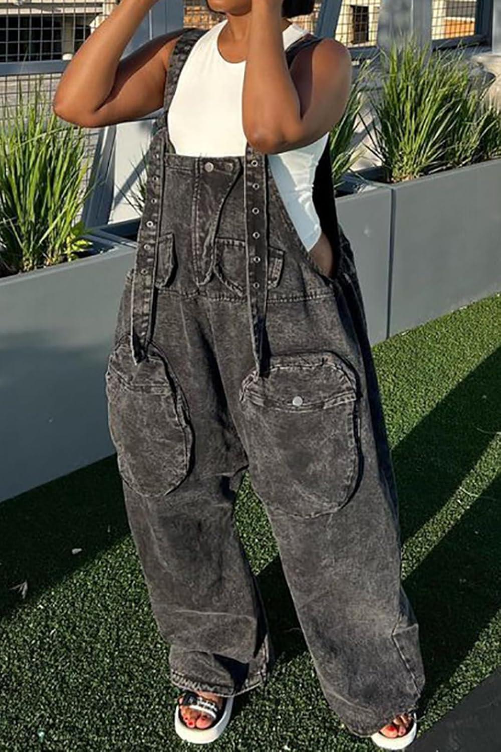 CHARTOU Women Loose Denim Overalls Jean Jumpsuit Suspender Straps Bib Overall Utility Romper Cargo Jumpsuit Pockets Loose denim bib overalls wide leg cargo jumpsuit Vintage retro jean jumpsuit for women denim overalls/ Suitable for spring, summer and fall 【Size Guide for DENIM JUMPSUIT】—- XS=US 0-2, S=US 4-6, M=US 8-10, L=US 12-14, XL=US 16-18, XXL=US 20-22. Please refer to the body size chart in last picture before purchase. 【SELLING POINTS for DENIM BIB OVERALLS】—– Adjustable straps suspender overalls/ Utility multi pockets/ Wide leg cargo jumpsuit/ Oversized and loose fit denim romper pants/ Vintage and retro style 【VERSATILE JEAN JUMPSUIT】—- Weekend casual jean jumpsuit for women denim jumpsuit denim bib overalls women, daily wear cargo jumpsuit jean romper for women denim 2024 denim overalls for women loose fit cargo overalls, streetwear sexy overalls for women utility romper, holiday vacation womens wide leg cargo jumpsuit