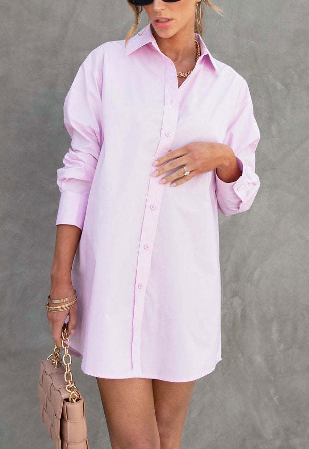 Tunic Shirt/ Button Down Shirt Dress/ Summer Midi Dress/ Loose Beach Cover Ups
