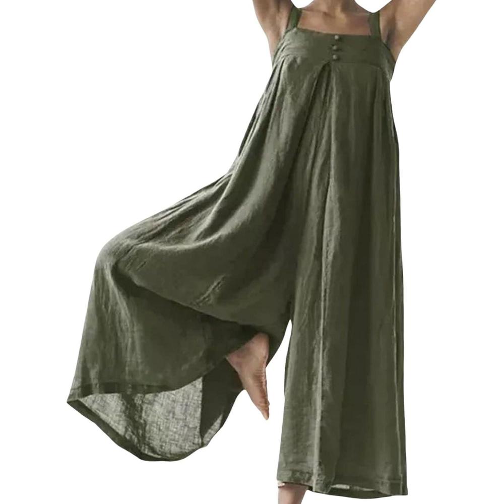 Don’t break the bank! Get the CHARTOU Women Loose Linen Wide Leg Jumpsuit One Piece Spaghetti Strap Palazzo Pants Long Romper Elastic Beach(Armygreen) you want at a price you can afford during our markdown sale.