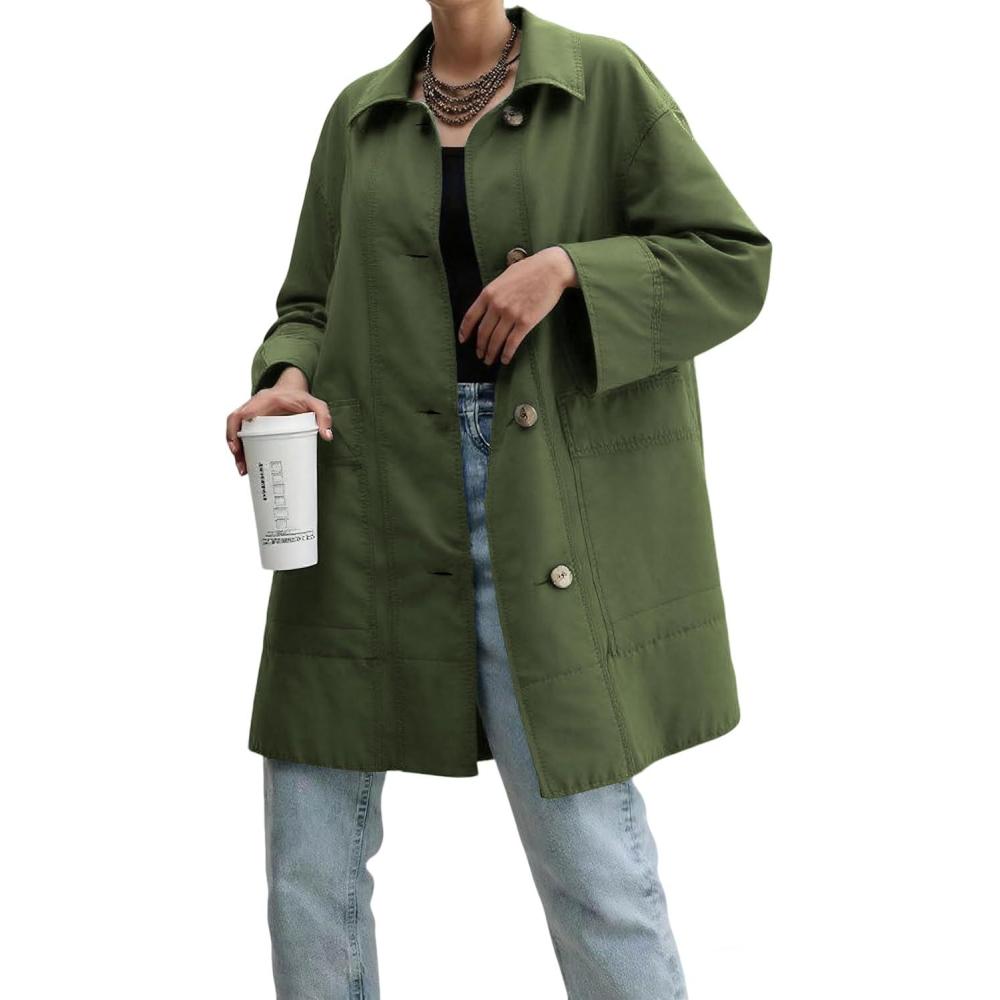 CHARTOU Women Midi Long Trench Coat Single Breast Oversized Casual Work Jacket Lightweight Overcoat(Green)