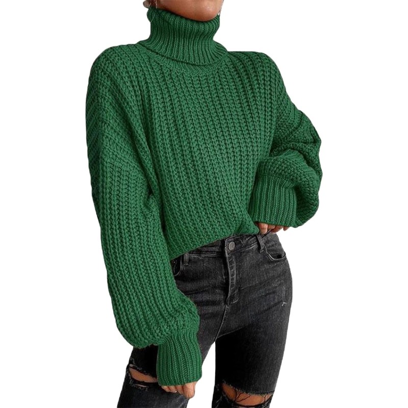 CHARTOU Women Oversized Cable Knit Turtleneck Sweater Long Sleeve Drop Shoulder Knitwear Pullover(Green)